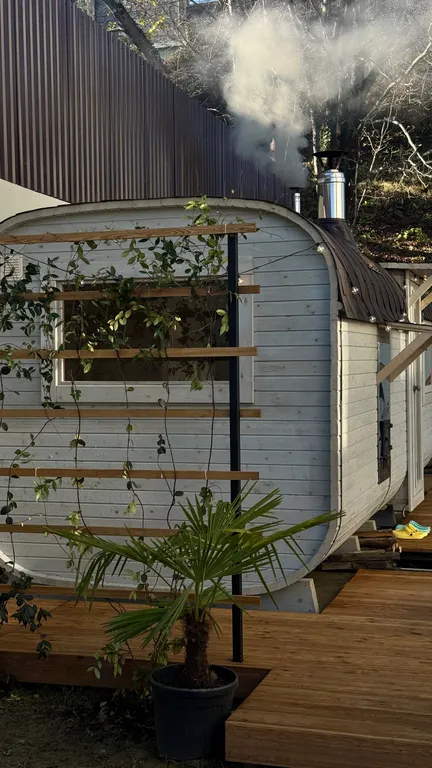 Уютный трёхэтажный дом на горе с баней и чаном в 15 минутах от центра Сочи на авто (Дагомыс) Чистота и свежий ремонт, вся территория в вашем распоряжении. Вместимость проживания: до 8 человек (3 спальни × 2 человека + раскладной диван в гостиной) Уединение с природой: вокруг лес и тишина. Утренние пробежки к морю и прогулки на велосипеде в горы Солохаула. Прекрасный активный отдых обеспечен! Рай для банного ценителя Парная с ароматом древесины и дровяной чан, с ароматной запаркой из смеси различных трав и целебного отвара (чан тщательно моется и заливается чистой водой после каждого заезда). Чередуйте жар бани с обливным ведром и расслаблением в чане. Готовьте шашлык и наслаждайтесь единением с природой. Здесь время останавливается. Планировка: 1 этаж: гостиная с диваном-кроватью, кухня, санузел с душевой 2 этаж: две уютные спальни 3 этаж: мастер-спальня с балконом (без штор — солнечные утра!) и ванная с туалетом Удобства: Двор с парковкой, террасой с зоной отдыха, баней, чаном,