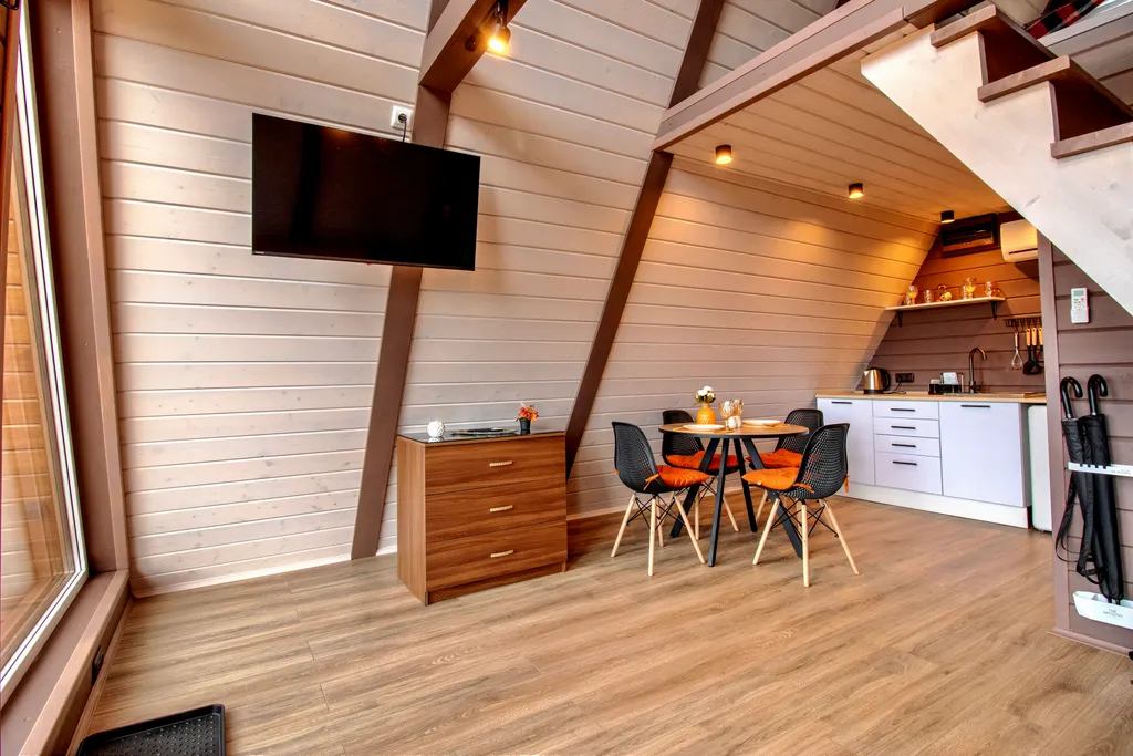«Атмосфера моря» приглашает вас на незабываемый отдых! А-Frame Black — ваш идеальный уголок у самой природы! Расположение: - Уютный домик рядом с лесом - На берегу Рыбинского водохранилища (самая широкая часть) - Песчаный пляж для идеального отдыха! Идеальный выбор для романтического вечера или подарка для любимого человека! Треугольный домик станет незабываемым дополнением к вашему отдыху. Что входит в стоимость? - Бесплатный Wi-Fi на всей территории базы и в каждом домике - Удобная парковка - Зона для барбекю, где можно прекрасно провести время с родными и близкими Вместимость: до 4-х человек в домике. Дополнительные услуги: - Банный чан у каждого дома — от 5000 руб - Банный комплекс для всех желающих Заселение с 16:00, выезд в 13:00. Забронируйте заранее, чтобы ваши даты были свободны! Мы ждем вас на нашем уникальном отдыхе!
