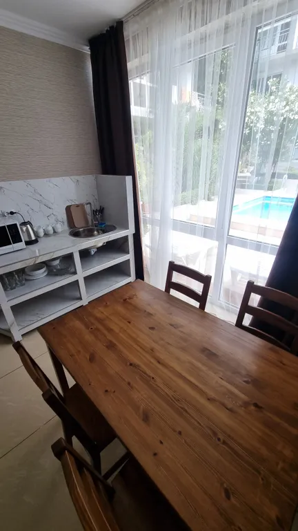 Находимся 600м от моря. В экологически чистой зоне. Все блага цивилизации в шаговой доступности. Кровать, шкаф, тумбочки, телевизор, диван, кондиционер, вентилятор. Ж. Д. Вокзал, автобусы, такси.