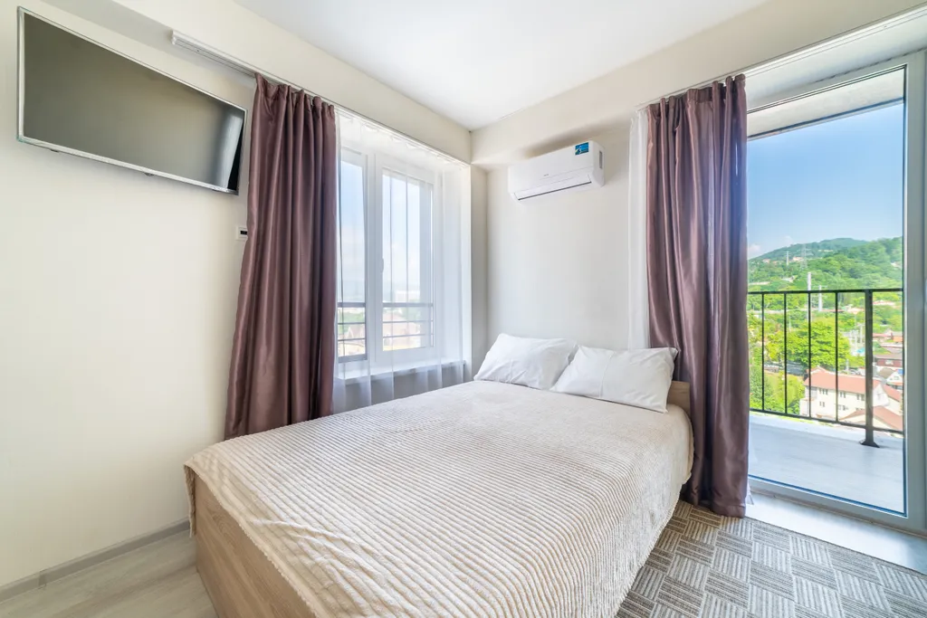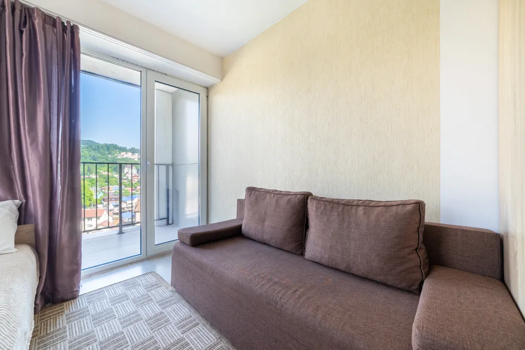 Студия в 100 метрах от моря и в 50 метрах от жд станции дагомыс. До центра сочи на ласточке 12 минут, на автобусе 20. Дом с охраняемой территорией, детской площадкой, спортплощадкой и баскетбольной площадкой, открытым бассейном (за доп плату). Вид из квартиры на горы и море. Остановки общественного транспорта и магнит в 7 минутах от дома. Море в 5-7 минутах от дома. Новый современный ремонт, вся необходимая бытовая техника (холодильник, стиральная машина, телевизор, фен, утюг, водонагреватель, кондиционер, микроволновая печь, плита). Общественная парковка недалеко от дома, так же рядом есть платная парковка. Двуспальная кровать и раскладной двуспальный диван, обеденный стол и стулья, кухонная зона, шкаф. Поблизости продуктовые магазины, кафе, столовые, аптека.