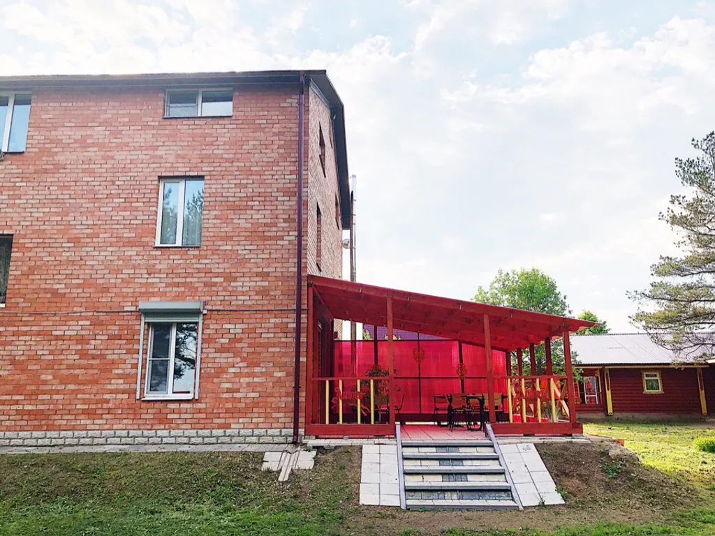 Гостевой дом трёхэтажный кирпичный гостевой дом с верандой, расположенный на берегу озера Неро рядом с сосновым бором. В доме есть общая кухня и уютные номера категории стандарт с удобствами. Общая вместимость гостевого дома составляет 40 человек. В доме 10 двухместных номеров с удобствами. На первом этаже располагается общая кухня-столовая и два номера. А на втором и третьем этажах по четыре номера с видом на сосновый бор и озеро. В каждом номере имеется 2 односпальные кровати, два раскладных кресла-кровати, которые могут использоваться, как дополнительные места, письменный стол, журнальный стол, телевизор, прихожая с вешалками для одежды. В каждом номере имеется санузел (душ, туалет и умывальник). Что касается комплекта белья для гостей, то посетителям предоставляется полотенца и постельное бельё на каждого гостя, а также мыло, гели, шампуни. На общей кухне есть бытовая техника холодильники, микроволновая печь, чайник, газовая плита, вся необходимая посуда, кухонная утварь, ме
