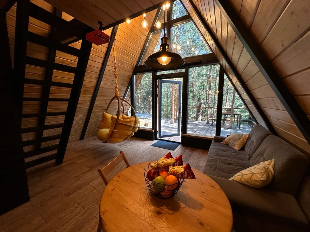 Хвойная Хижина - это треугольный дом в сосновом лесу с купелью, где мы позаботились обо всем, чтобы вы могли спонтанно приехать и перезагрузиться. Наша миссия - ваши чувства — ощущение того, что Вы приехали в свой уютный лесной дом, где всё готово для спокойного отдыха вдали от суеты. Мы ценим тишину и уют, поэтому концепция Хижины – это уединение и отдых от социального шума. В доме для комфортного провождения есть: комплект постельного белья, полотенца, тапочки для улицы, фен, гель для душа, шампуни, ватные диски, палочки, зубной одноразовый набор, аптечка, халаты для купели. Есть чай, кофе, масло, соль , фрукты и круассаны, питьевая вода. Из техники есть свч, холодильник, чайник, капсульная кофеварка, мангал с решеткой (уголь и розжиг нужно взять с собой, либо у нас есть набор в продаже - 500 ₽) Обращаю внимание, что у нас нет плиты, а только техника указанная выше. Есть блютуз-колонка, книги, настольные игры, wi-fi и проектор (у нас есть кабель HDMI для подключения вашего ноутбука и