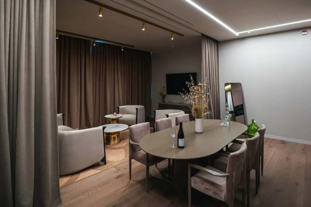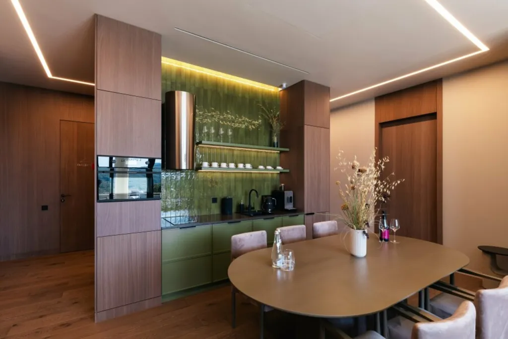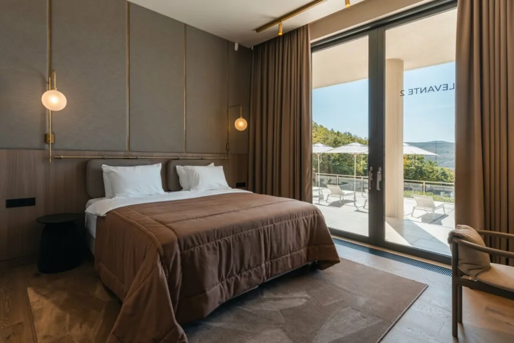Дизайнерский номер Levante Family Suite с панорамным видом на органический виноградник и бассейн. Интерьер номера выполнен в натуральных светлых оттенках, его идеально дополняют графичные картины художницы, использовавшей в своих работах изолинии Крымского рельефа в качестве главного мотива. Две односпальные кровати с возможностью объединения в двуспальную, можно установить дополнительное место для взрослого и разместить детскую кроватку; ванная комната с душевой кабиной, ванной и санузлом; изолированный санузел; современная гардеробная комната со встроенными шкафами; просторная гостиная с кухней, большая обеденная зона. Номер оборудован всем необходимым для комфортной жизни: гладильная доска, утюг; фен, халат, тапочки, средства личной гигиены Natura Siberica; бытовая техника SMEG: чайник, капсульная кофе-машина, духовой шкаф, электроплита, TV; сейф для хранения личных вещей.