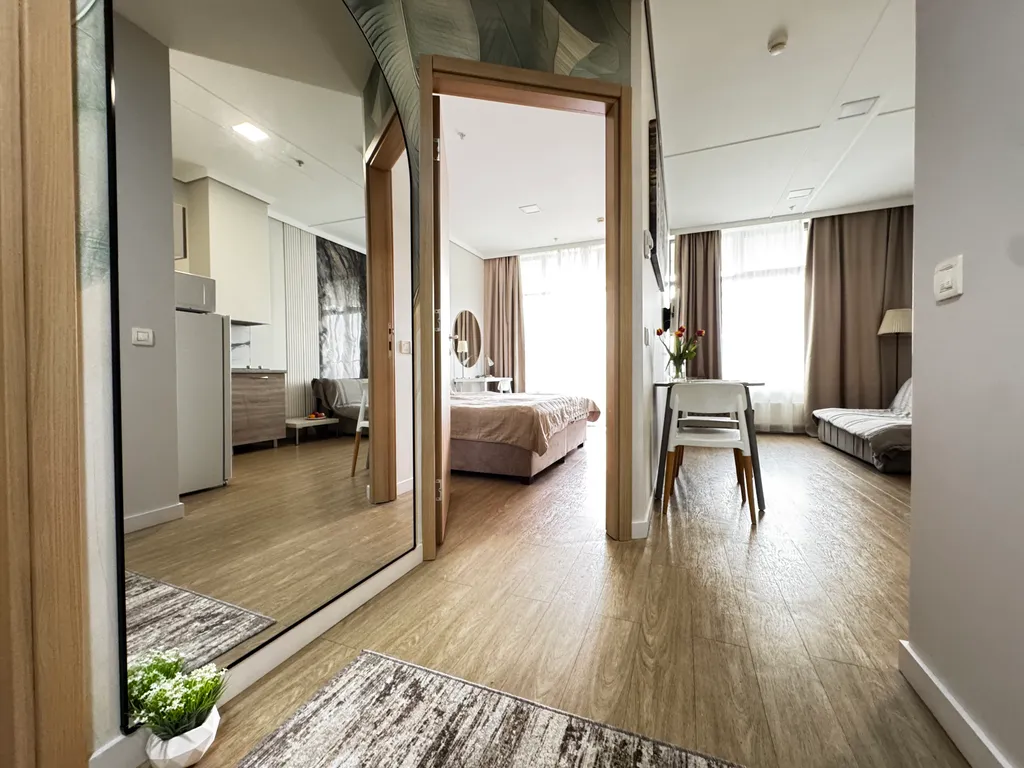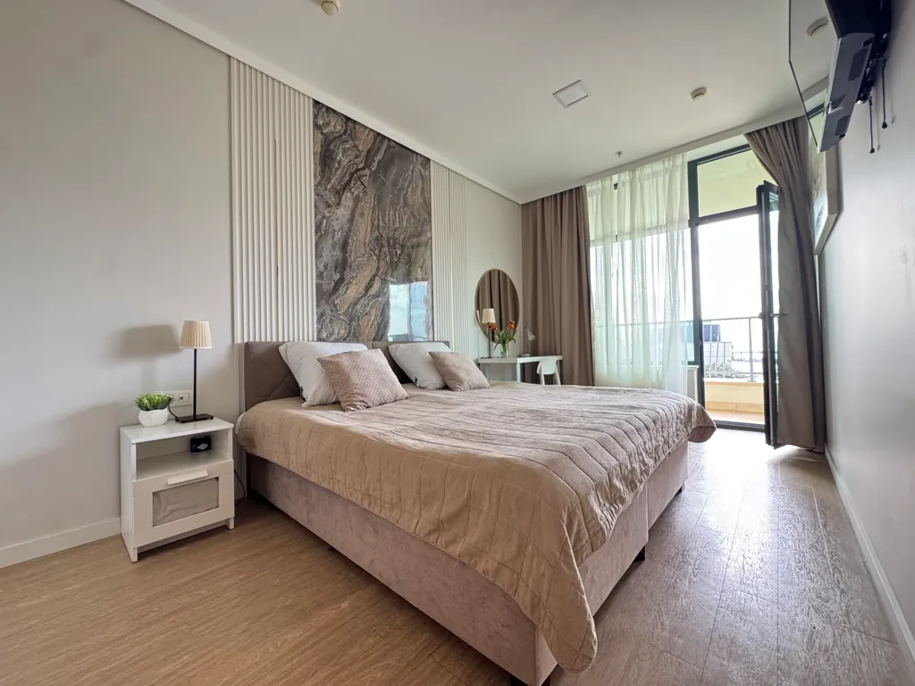 Апартаменты с видом на море в центре Сочи | Brevis | первая линия Светлая и уютная квартира с панорамным видом на море в престижном комплексе Brevis (Pullman / Mercure), расположенном в самом центре Сочи. Идеально подойдет для отдыха: море, набережная, рестораны и главные достопримечательности города находятся в пешей доступности. О квартире Современная квартира с панорамным остеклением и балконом. Подходит для комфортного размещения до 4 гостей. В квартире: — две односпальные кровати с возможностью объединения в двуспальную — раскладной диван-кровать — просторный балкон с зоной отдыха — вид на море Оснащение Для вашего комфорта предусмотрено все необходимое: — высокоскоростной Wi-Fi и ТВ — кондиционер — полностью оборудованная кухня (плита, холодильник, микроволновка, чайник, посуда) — стиральная машина — гладильные принадлежности — постельное белье и полотенца — фен, тапочки, косметические и гигиенические средства Дополнительно Локация Апартаменты находятся в самом центре