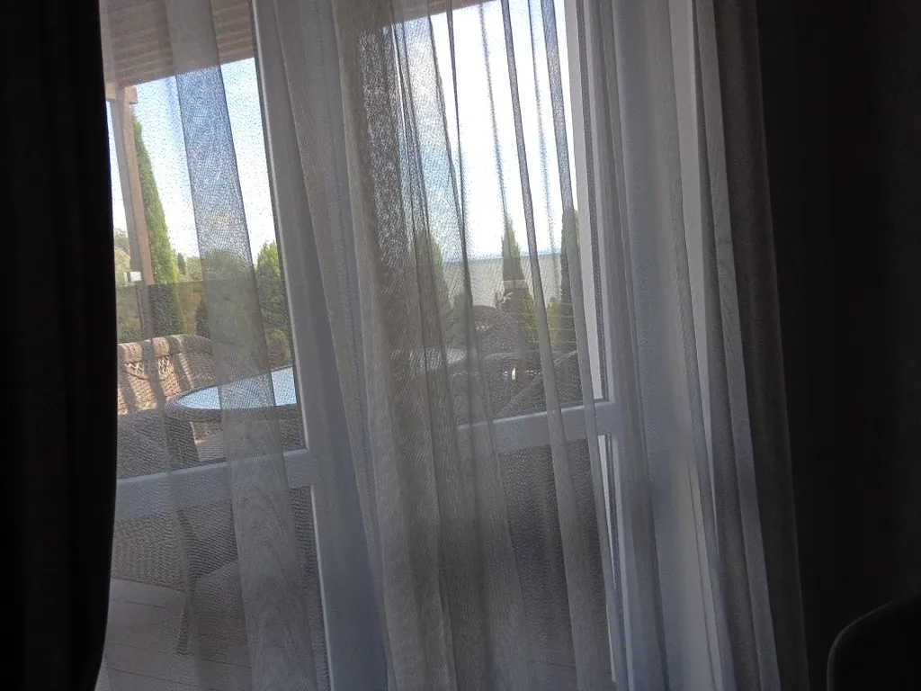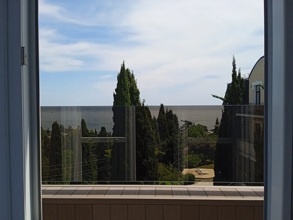 Однокомнатный с кухней. Прихожая. Санузел: душевая кабинка, унитаз, гигиенический душ. Прихожая. Санузел: душевая кабинка, унитаз, гигиенический душ. Комната - студио: кровать king size bed , двух спальный диван, шкаф. Кухня: варочная поверхность, СВЧ печь, чайник, холодильник, кондиционер, телевизор. Терраса. Вид на море, горы, кипарисы.
