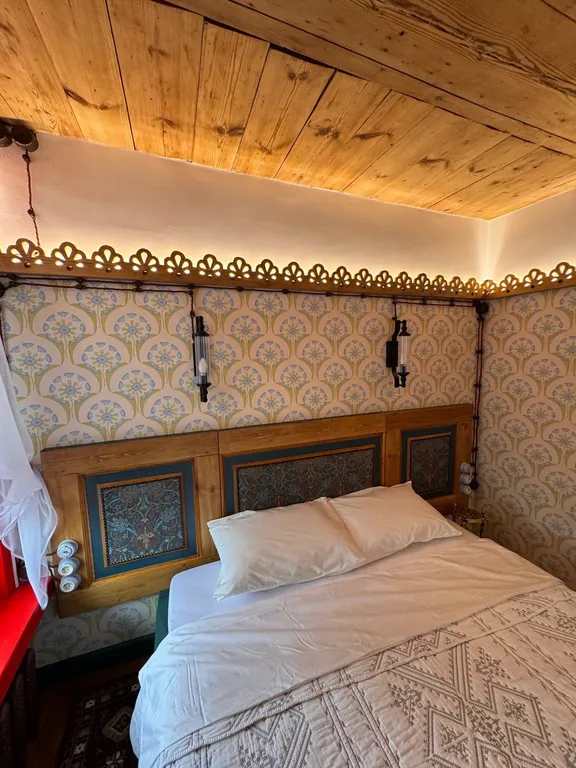 Двухуровневый номер в доме xix века. Просторная гостиная с голубой печью и яркой лестницей ведёт в приватную мансарду. Там гостей встречают панорамное окно и обои с птицами. Идеально для семей, пар и тех, кто ищет вдохновение и уют. На этаже имеется общая кухня со стиральной машиной. Печь растапливать запрещено.