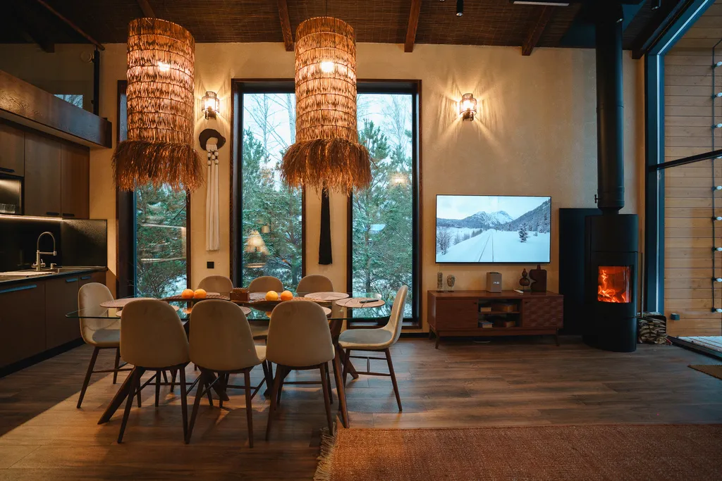 Предлагаем отдохнуть в видовых домах в стиле A-frame и barnhouse и попариться в русской бане в «kрона кэмп». Эргономичное пространство barnhouse 120 м2 – идеально вписывается в окружающий ландшафт под кронами берез. В доме на первом этаже ты найдешь: Две спальни с кроватями king-size и потрясающим видом на лес. Просторную кухню-гостиную с большим столом и двумя удобными диванами. Настоящий дровяной камин Astov. Телевизор. Wi-Fi. Алиса. Огромное панорамное окно высотой в 2 этажа и функциональную ванную комнату с душевой со всеми необходимыми принадлежностями для комфортного проживания. Просторную террасу, которая оснащена большим столом со стульями, зонтом от солнца и дождя, лежаками и горячей купелью (диаметр 220 см) с массажем и подсветкой для живописного вечера на природе или для утренней медитации. На втором этаже располагается спальня с кроватью king-size и односпальной кроватью с видом на лес. У каждого дома собственная уличная зона отдыха с костровищем, удобными стульями и