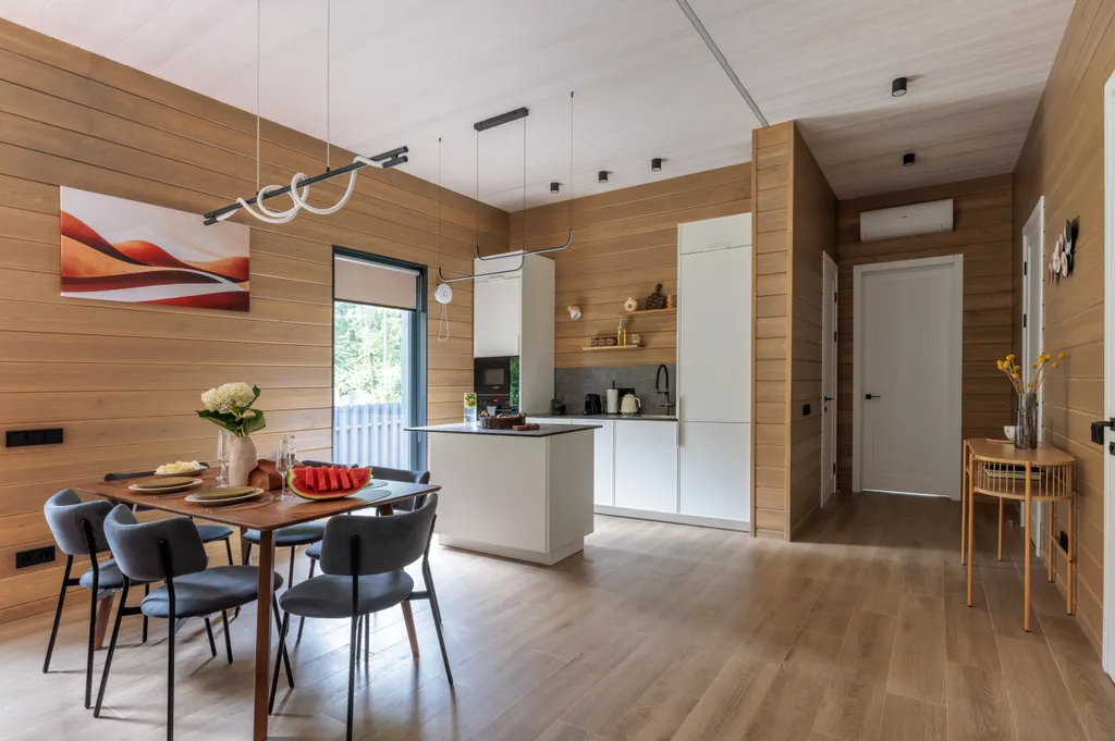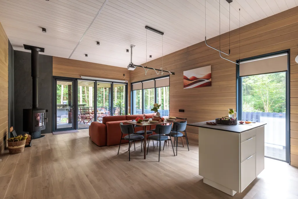 Иногда, чтобы почувствовать настоящий отдых, нужно всего лишь оказаться в правильном месте. Наш дом создан для тех, кто устал от шума города и хочет спокойствия, уюта и природы рядом. Здесь лес встречается с тишиной, а время будто замедляется. Он задаёт ритм всему отдыху – медленный, настоящий, живой. Прóсека – это больше, чем просто дом. Это место, где отдых становится настоящим, а каждая деталь продумана для полного восстановления. Что вас ждёт? - 2 уютные спальни в балийском стиле с мягкой большой ортопедической постелью 180х200 для глубокого сна - Панорамная кухня-гостиная с обеденной зоной и островом – полностью оборудованная для комфортного отдыха - Высокие потолки, что придает пространству больше воздуха - Просторная душевая комната - Дровяной камин для тёплых вечеров - Проектор, Smart TV, Wi-Fi, и колонка для фильмов и музыки - Тёплые полы по всему дому - Установлен фильтр для питьевой воды, подходящий для детского потребления - Большая терраса для завтраков и душевных разг