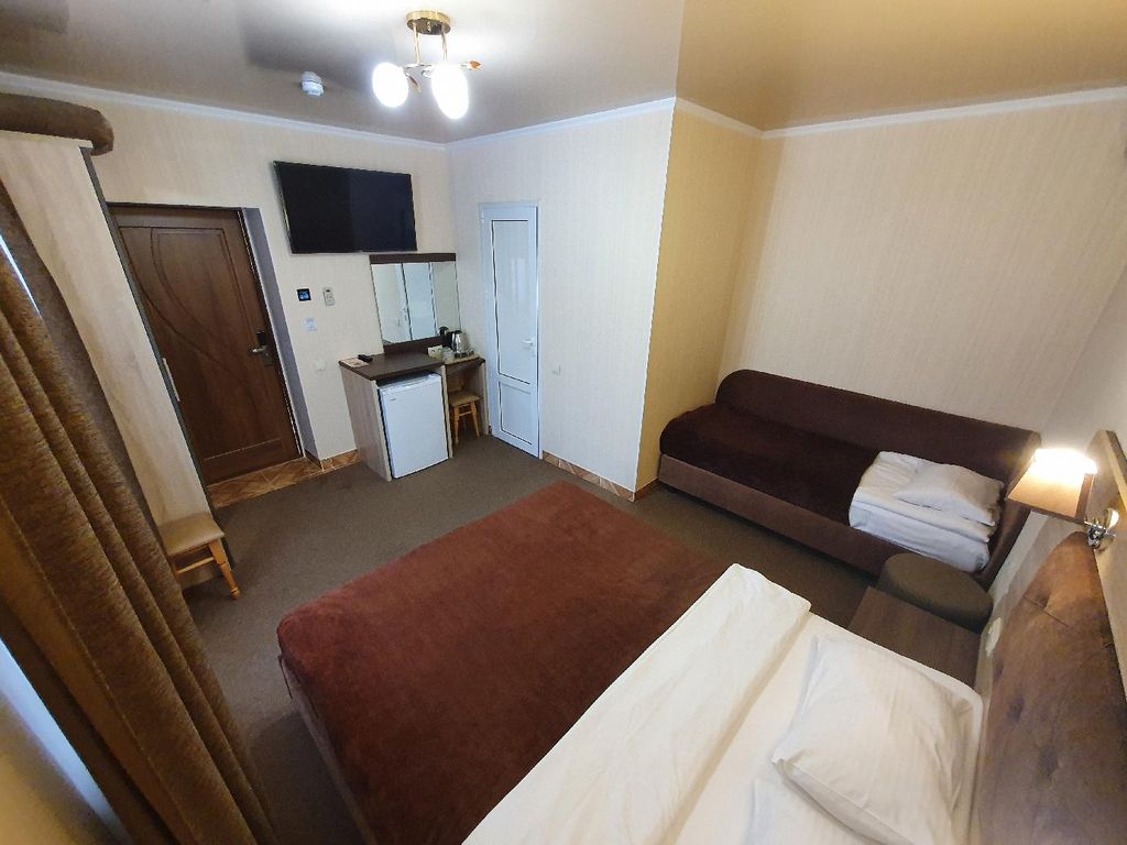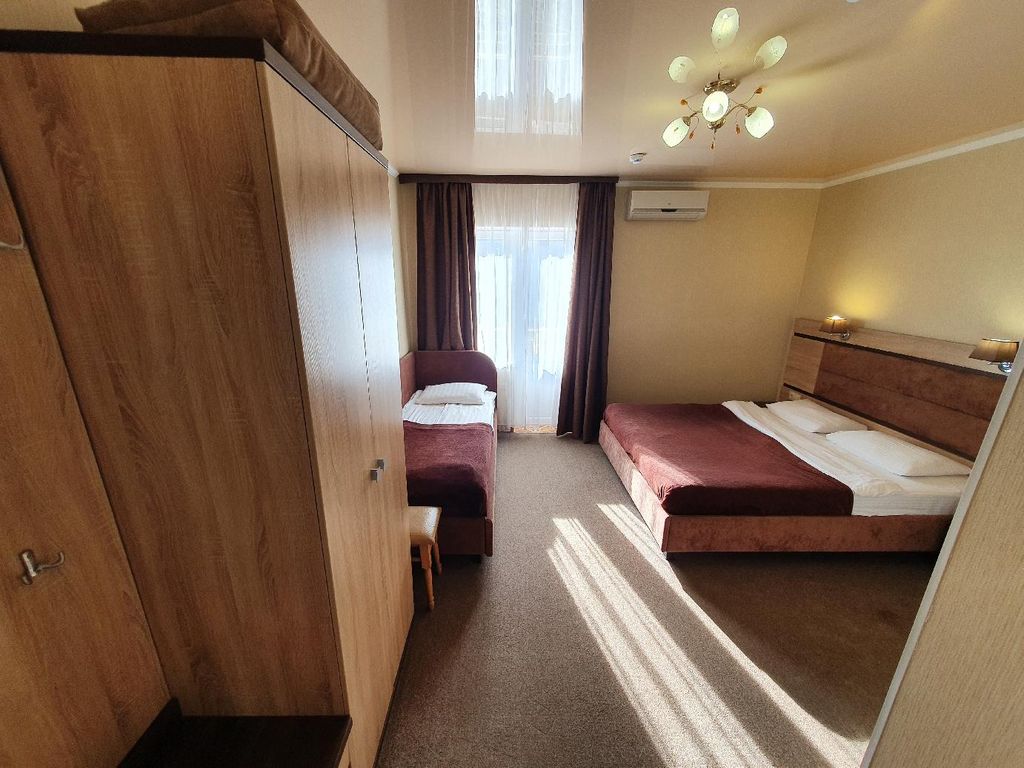 Отель золотой (возле аквапарка "медуза") предлагает к размещению у моря 2-х местные номера ( 14 кв. М ), 3-х и 4-х местные номера ( 16 кв. М ), в каждом из которых имеется холодильник, электрочайник, фен, два полотенца на каждого, кондиционер, спутниковое тв, wi-fi доступ в интернет, сейф, душ, туалет, умывальник. Для вас в коттедже работает кафе. Отель золотой расположен в 50 метрах от моря. Удалённость от г. Евпатория-15км, от г. Саки-10км. Отель находится на территории дачного массива морское, там же аквапарк "медуза" (самый большой в крыму), в 3-х км- развлекательный центр "солнышко"- место проведения ежегодных фестивалей. Бесплатный галечно-песчаный пляж, ширина которого порядка 100 м. Рядом ж-д станция прибрежная. Некоторые отдыхающие приезжают на прибрежку именно ради целебных грязей озера, которое расположено в 500 м от поселка. Уже построены и принимают отдыхающих гостиницы. В летнее и зимнее время работают бары и рестораны.