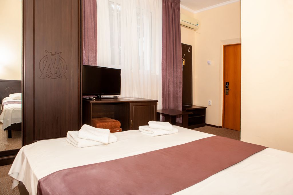 SPA- отель "Максимус" в г. Анапа представляет собой два 5-этажных корпуса, в которых находятся не только комфортабельные номера, но и целый комплекс услуг и развлечений. Все номера оборудованы современной эксклюзивной мебелью, звукопоглощающим ковролином. В отеле установлена электронная система открывания дверей и система телефонизации, каждый номер оснащён современными санузлами с душевыми кабинами, сплит-системами, жк-телевизорами. Доступны услуги прачечной, химчистки, глажки. Доступен бесплатный wi-fi. При отеле есть парковка для гостей отеля, spa- зона ежедневно бесплатно, столовая, открытый подогреваемый бассейн, бильярд, тренажеры, теннисный стол. Для вашей безопасности установлена система видео-наблюдения и пожарная сигнализация. Так же отель находится под охраной. Лифт в отеле не предусмотрен. Гостям предлагается бассейн с площадкой для загара. Spa- зона представляет собой комплекс бань и бассейнов, посещение которых позволят каждому гостю почувствовать расслабление,