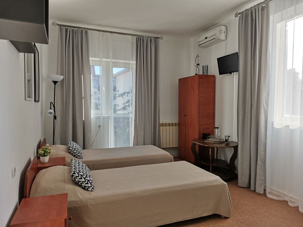 Курортный отель Афина. У нас безопасно! У нас свободный пляж и самый лучший пологий вход! Сейчас самая комфортная температура воды +24 Чтобы быть в курсе по времени в пути на мосту, подписывайтесь на Telegram канал Крымский мостhttps://t.me/most_official Мини-отель находится на западном побережье Крыма, в курортном поселке городского типа Николаевка, расположенном между городами Севастополь и Евпатория. Николаевка расположена в зоне степного Крыма, уникальный воздух которого, благотворно влияет на органы дыхания. В отеле 9 комфортных, уютных номеров с Современным дизайном (2х, 3х и 4х местные, два номера с отдельным входом и собственной кухней ). Каждый оснащен необходимой техникой (чайник, холодильник, кондиционер, фен), санузлом с душем. Мини-отель расположен в гостиничном комплексе «Скиф», территория которого небольшая, но очень уютная. Много разнообразных хвойных деревьев, южных растений и цветов. Территория комплекса круглосуточно охраняется. Пляж находится на расстоянии 200 м