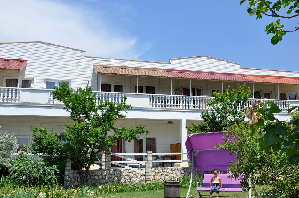 Пансионат «Песчаный берег» расположен в экологически чистом курортном пригороде Севастополя - Любимовка, примыкает к замечательному пляжу Любимовки (первая линия от моря). Пляж широкой, вход в море постепенный и плавный, удобно для отдыха с детьми. Оборудован навесами и шезлонгами (сервис платный). - На территории есть кафе, магазин, аптека, гостевой выход в столовую и к открытому бассейну за территорией. - Стабильный интернет Wi-Fi - Проживание гостей в домиках и корпусах с собственными террасами, номера с удобствами. - Питание по желанию за доп. плату. Комплексное 3х разовое 1 480,00 руб. - Возможно проживание с питомцами (под запрос). - Номера для аллергиков. - Места для курения на территории. - Место для пикника. - Детская площадка. - Удобная локация для путешествий и поездкам в город Севастополь, ост. общественного транспорта за воротами. - Аренда авто. - Прокат велосипедов.