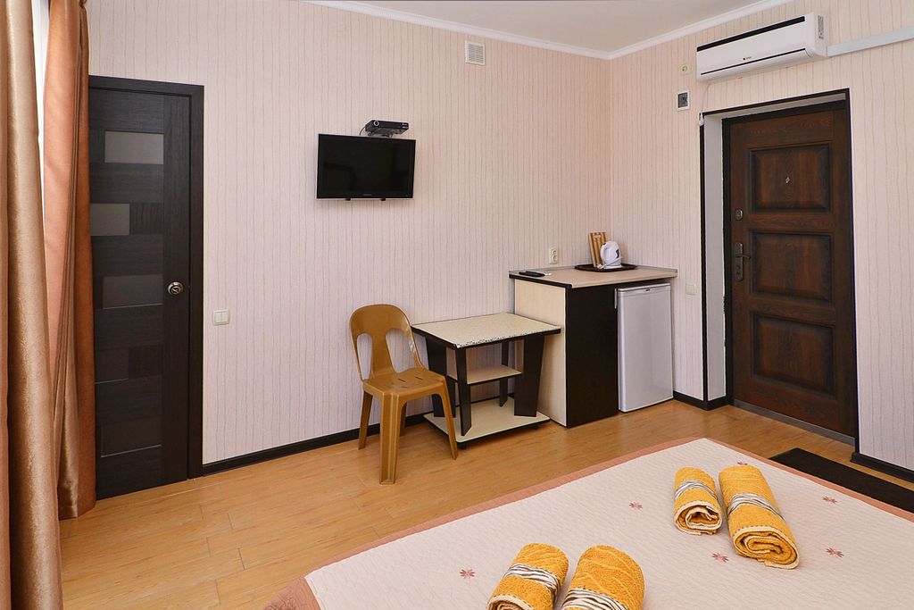 Курортный отель «Лотос» — это комплекс из двух домиков, расположенных непосредственно на территории базы отдыха «Прибой» в самом центре, во дворе первой линии застройки от моря, всего в трёх минутах ходьбы от самого большого на нашем побережье пляжа — благоустроенного и бесплатного. База отдыха «Прибой» находится между городами Саки и Евпатория на западном побережье Крымского полуострова, которое славится своими чистыми мелкопесчаными пляжами. «Прибой» — это маленькое государство, на территории которого есть всё, чтобы провести отпуск или выходные, не покидая его пределов. В нашем комплексе 13 уютных номеров, и все они оборудованы для максимально комфортного отдыха гостей. В каждом номере есть бесплатный доступ в интернет (Вайфай), а также цифровое телевидение с 20 российскими и 7 местными каналами. Во дворе собственной придомовой территории можно посидеть в тени, поиграть с детьми, хозяйки смогут пользоваться кухней для самостоятельного приготовления еды.