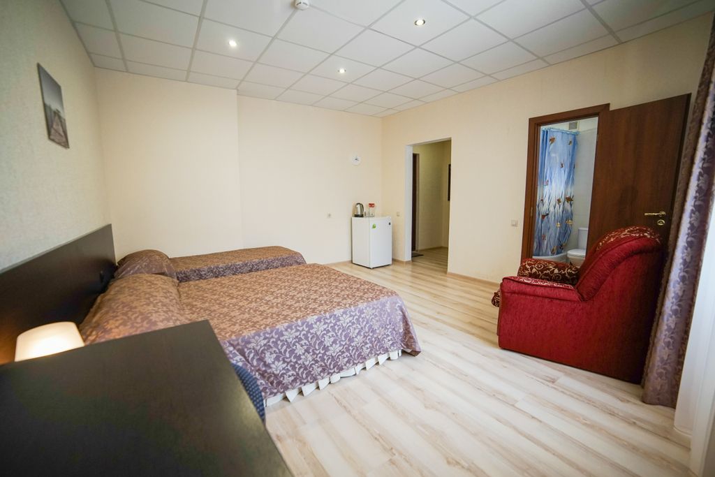 Шаг и уже на пляже! Отель «Робинзон» с радостью предоставит гостям комфортный отдых на черноморском побережье. Располагается на первой береговой линии, 2 минуты до песчаного широкого и немноголюдного пляжа. Для гостей отеля доступна пляжная зона, оборудованная лежаками, теневым навесом, зонтиками, кабинками для переодевания, душем. Для приятного отдыха на территории располагаются: -столовая, где можно насладиться сытными и вкусными блюдами домашней кухни; -обустроенная игровая зона для детей; -бассейн с выделенной детской зоной, возле которого предоставляется возможность удобно расположиться на шезлонгах; -бесплатная парковка; - wi-fi. Допустимо размещение с животными декоративных пород весом до 8 кг (по согласованию с администрацией отеля), доплата составляет 700 руб. /сутки.