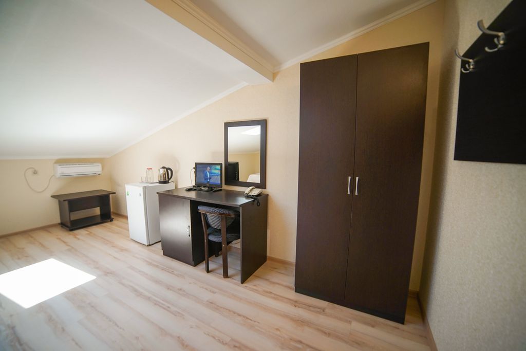 Шаг и уже на пляже! Отель «Робинзон» с радостью предоставит гостям комфортный отдых на черноморском побережье. Располагается на первой береговой линии, 2 минуты до песчаного широкого и немноголюдного пляжа. Для гостей отеля доступна пляжная зона, оборудованная лежаками, теневым навесом, зонтиками, кабинками для переодевания, душем. Для приятного отдыха на территории располагаются: -столовая, где можно насладиться сытными и вкусными блюдами домашней кухни; -обустроенная игровая зона для детей; -бассейн с выделенной детской зоной, возле которого предоставляется возможность удобно расположиться на шезлонгах; -бесплатная парковка; - wi-fi. Допустимо размещение с животными декоративных пород весом до 8 кг (по согласованию с администрацией отеля), доплата составляет 700 руб. /сутки.