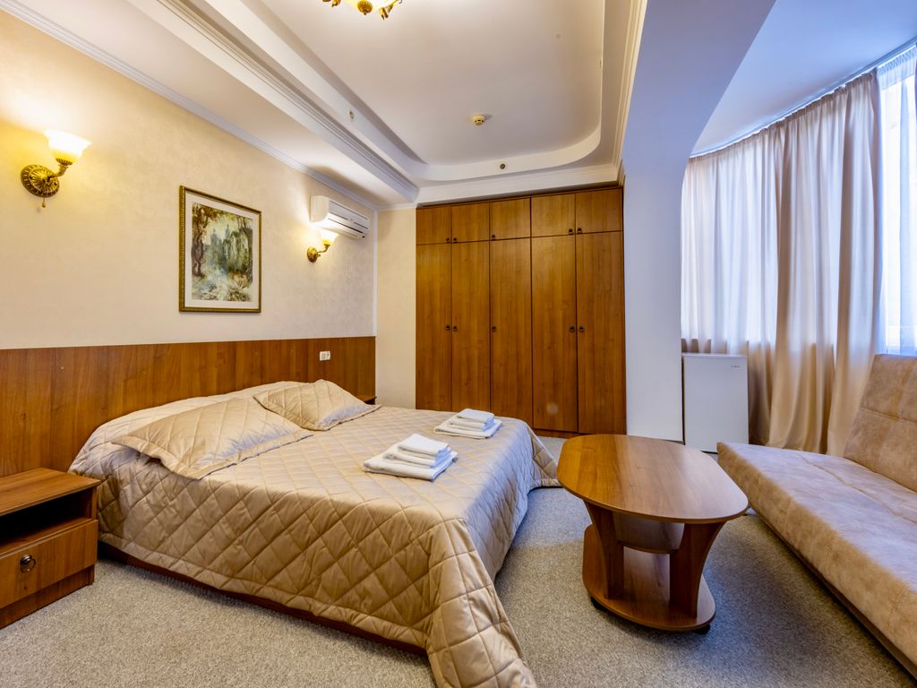 Вилла Ренессанс это современные номера категорий люкс, полулюкс, делюкс, оснащены кондиционерами, холодильниками, ЖК телевизорами, фенами, туалетными принадлежностями, сейфами,чайниками, WIFI и прочим необходимым. На 1м этаже виллы есть летняя площадка с бассейном и видом на море, оборудованная столиками, шезлонгами, барбекю и всем прочим для комфортного отдыха. Ренессанс расположен в конце рабочего уголка на территории частных элитных Вилл "Отрада", рядом найдётся множество развлечений. В радиусе 100м от виллы находятся 4 кафе с прекрасной кухней. 10ть пляжей в 150м. замыкают длинную цепочку пляжей Алушты и по праву считаются самыми чистыми на этом побережье, на все пляжи свободный доступ. Для любителей активного отдыха возможно взять на прокат автомобили, каяки, яхты, катамараны, квадроциклы, поиграть в пляжный волейбол, порыбачить или нырнуть с аквалангом. Так же рядом находятся один из лучших аквапарков Крыма. Для любителей экскурсий рядом с кафе возле отеля работает пред