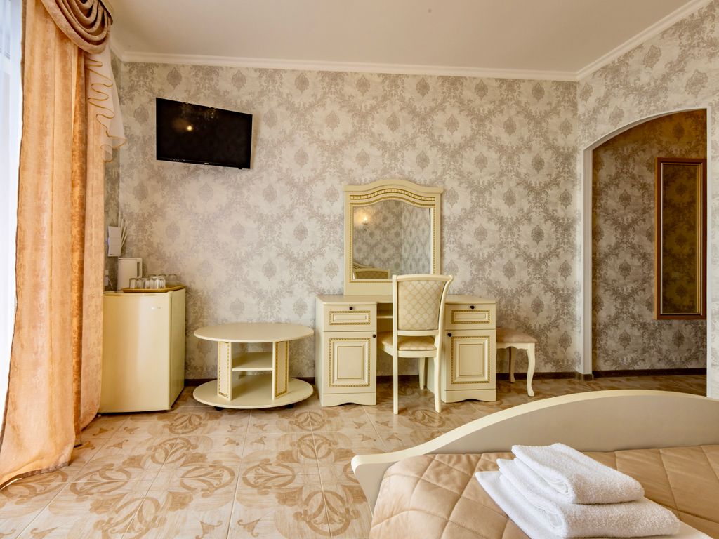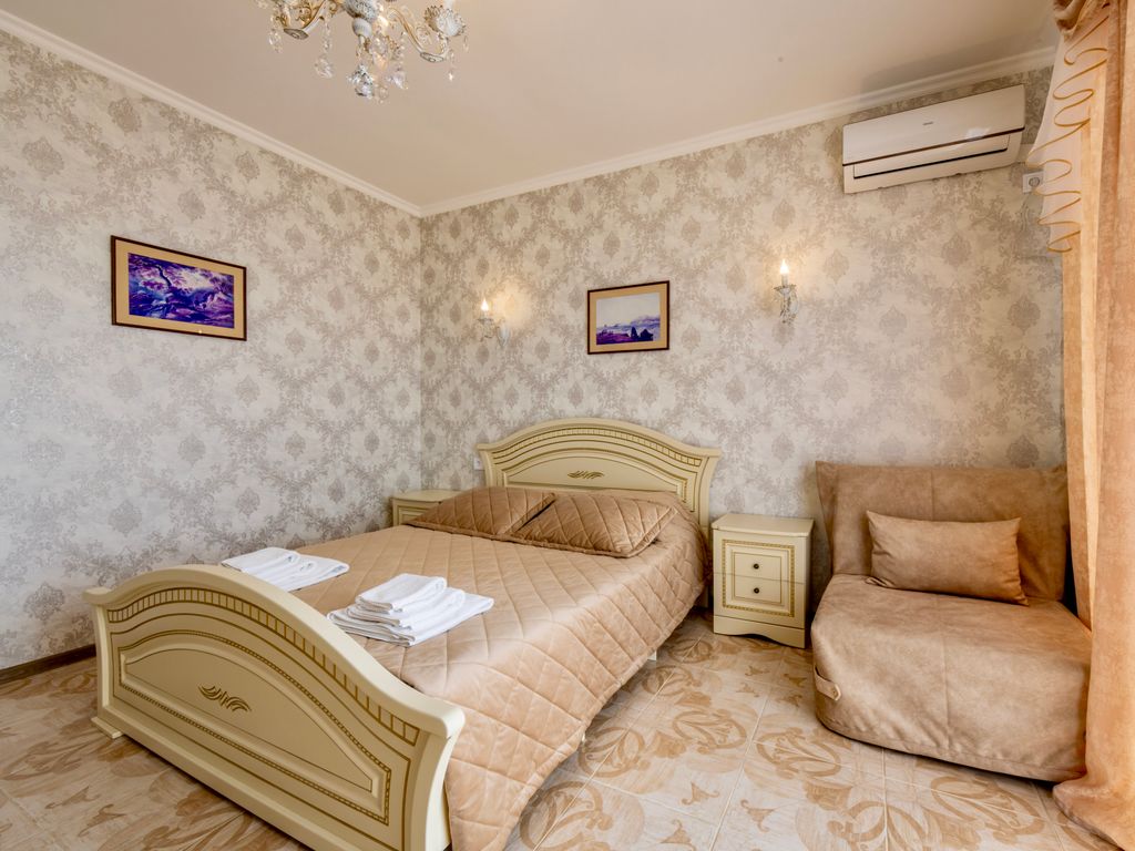 Вилла Ренессанс это современные номера категорий люкс, полулюкс, делюкс, оснащены кондиционерами, холодильниками, ЖК телевизорами, фенами, туалетными принадлежностями, сейфами,чайниками, WIFI и прочим необходимым. На 1м этаже виллы есть летняя площадка с бассейном и видом на море, оборудованная столиками, шезлонгами, барбекю и всем прочим для комфортного отдыха. Ренессанс расположен в конце рабочего уголка на территории частных элитных Вилл "Отрада", рядом найдётся множество развлечений. В радиусе 100м от виллы находятся 4 кафе с прекрасной кухней. 10ть пляжей в 150м. замыкают длинную цепочку пляжей Алушты и по праву считаются самыми чистыми на этом побережье, на все пляжи свободный доступ. Для любителей активного отдыха возможно взять на прокат автомобили, каяки, яхты, катамараны, квадроциклы, поиграть в пляжный волейбол, порыбачить или нырнуть с аквалангом. Так же рядом находятся один из лучших аквапарков Крыма. Для любителей экскурсий рядом с кафе возле отеля работает пред