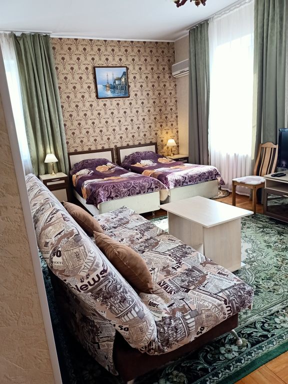Стандартные номера однокомнатные или двухкомнатные расположены на 3 и 4 этаже (лифта нет). Центр города. Море (песчаный пляж), кафе, столовая, городской театр в шаговой доступности (500 м). Представителя отеля «Якорь» на первом этаже нет. В отеле бесконтактное заселение по коду, в день вашего заезда менеджер свяжется с вами и сообщит номер комнаты и код для заселения.