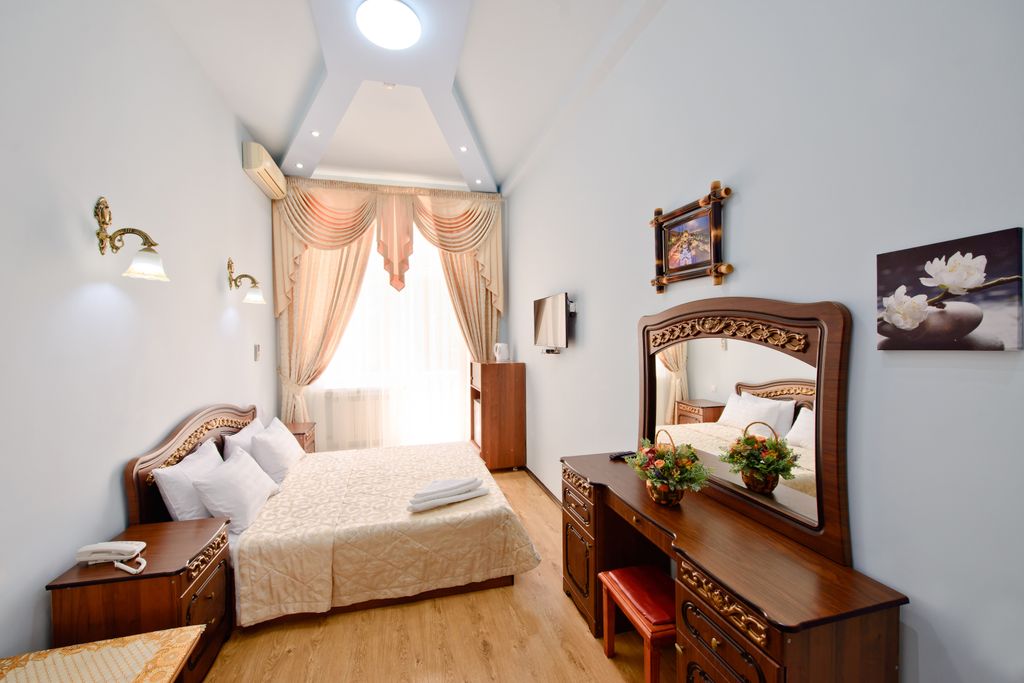 Отель категории 3 звезды расположен в центре города Сочи. Бесплатный пляж в 5-7 минутах на транспорте. С 1 июня и до 30 сентября рады Вам предложить бесплатный трансфер до пляжа по графику. Современный комфортабельный отель, который славится отличным соотношением цены и качества. К услугам гостей 2-местные, 3-местные и 4-местные номера различных категорий. В стоимость проживания входит завтрак по системе шведский стол. Так же на обед или ужин мы предложим Вам самые вкусные блюда европейской и кавказской кухни. Для комфорта гостей в отеле предусмотрен лифт. На территории отеля есть бассейн с подогревом, бильярд, сауна, мини-маркет, салон красоты и бесплатный Wi-Fi.