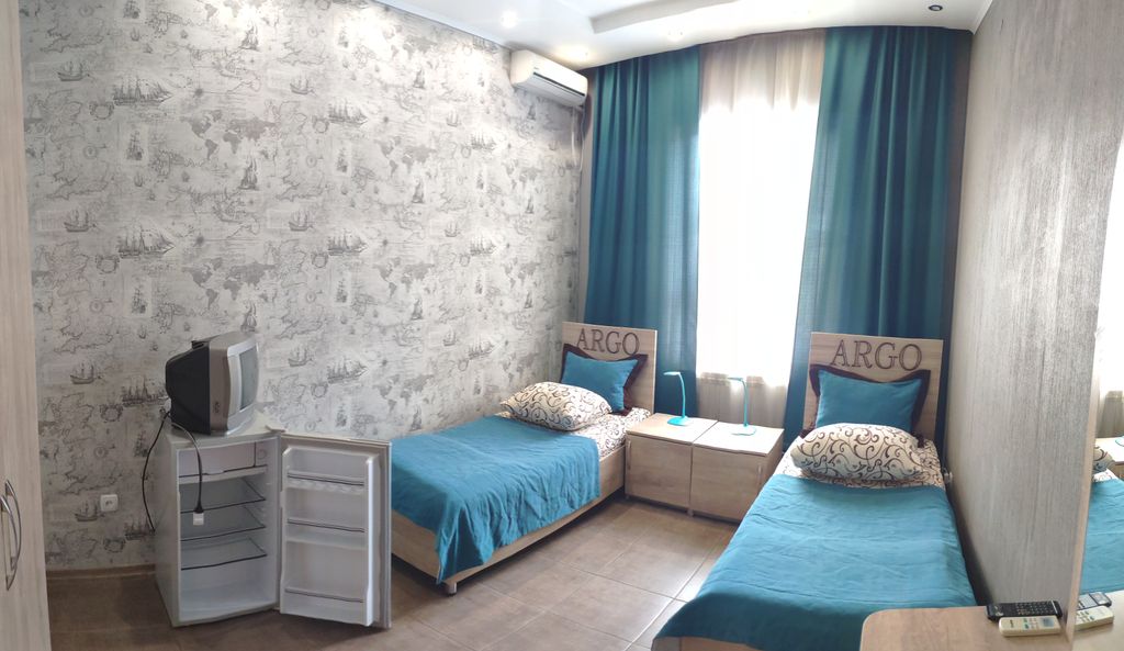 Уютный и домашний отель «Арго» приглашает всех желающих в гости в Евпаторию! Пляжный отдых на песках Евпатории давно стал популярным среди туристов России. Многим полюбилась Евпатория за мягкий теплый климат на черноморском побережье. Разнообразный отдых предлагается для детей всех возрастов. Взрослые смогут посетить город Саки с всемирно известными лечебными грязями. Многие наши гости по достоинству оценили комфорт и уют наших номеров. Все номера отеля «Арго» со всеми удобствами. Новая мебель, интерьеры и прекрасный персонал сделают ваш отдых в Евпатории незабываемым, и вы обязательно порекомендуете нас вашим друзьям и захотите вернуться к нам снова! Отель «Арго» расположен на тихой улочке, да и сам наш город считается тихим и курортным местом для комфортного отдыха семьями и друзьями в разное время года. Климат Евпатории в летний период жаркий, но вы всегда сможете укрыться в оборудованных парках и скверах отдыха с вечнозелёными субтропическими растениями!