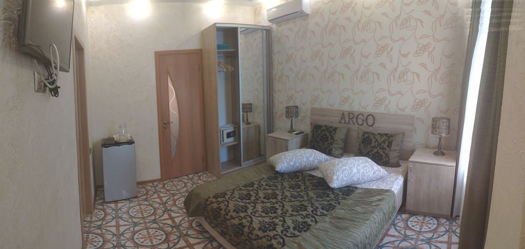 Уютный и домашний отель «Арго» приглашает всех желающих в гости в Евпаторию! Пляжный отдых на песках Евпатории давно стал популярным среди туристов России. Многим полюбилась Евпатория за мягкий теплый климат на черноморском побережье. Разнообразный отдых предлагается для детей всех возрастов. Взрослые смогут посетить город Саки с всемирно известными лечебными грязями. Многие наши гости по достоинству оценили комфорт и уют наших номеров. Все номера отеля «Арго» со всеми удобствами. Новая мебель, интерьеры и прекрасный персонал сделают ваш отдых в Евпатории незабываемым, и вы обязательно порекомендуете нас вашим друзьям и захотите вернуться к нам снова! Отель «Арго» расположен на тихой улочке, да и сам наш город считается тихим и курортным местом для комфортного отдыха семьями и друзьями в разное время года. Климат Евпатории в летний период жаркий, но вы всегда сможете укрыться в оборудованных парках и скверах отдыха с вечнозелёными субтропическими растениями!