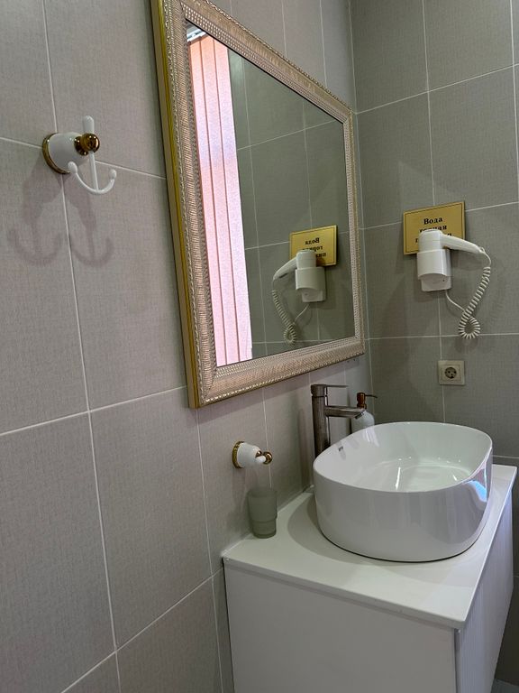 Гостиница в историческом особняке, отреставрированное здание начала прошлого века. Номера «комфорт», «делюкс» и «семейный полулюкс». В номерах красивая светлая мебель, холодильник, широкая кровать. Чайник и микроволновка. Посуда. Санузел. Халаты и тапочки.
