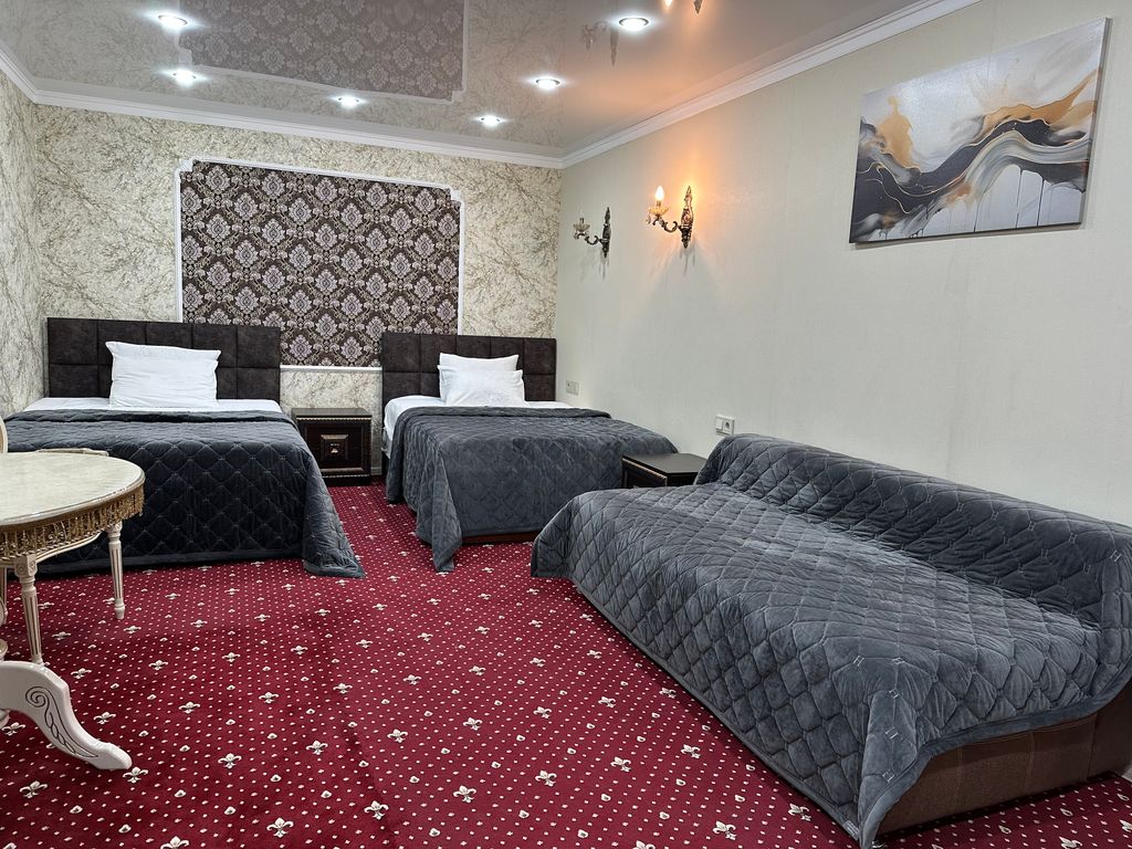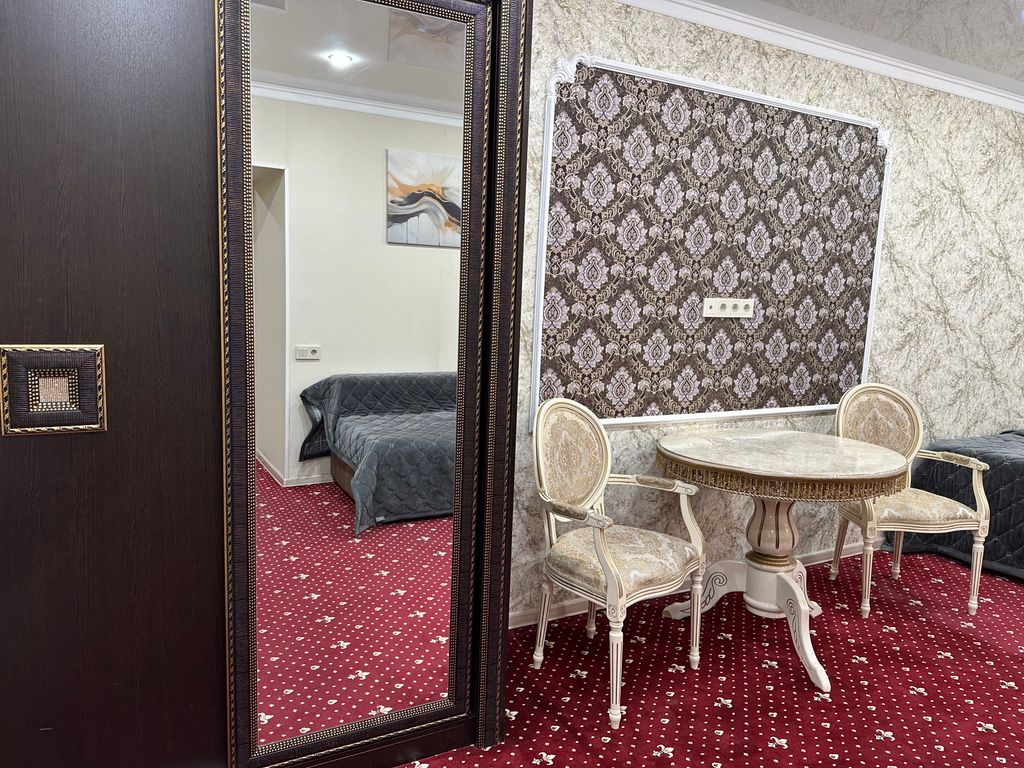 Гостиница в историческом особняке, отреставрированное здание начала прошлого века. Номера «комфорт», «делюкс» и «семейный полулюкс». В номерах красивая светлая мебель, холодильник, широкая кровать. Чайник и микроволновка. Посуда. Санузел. Халаты и тапочки.