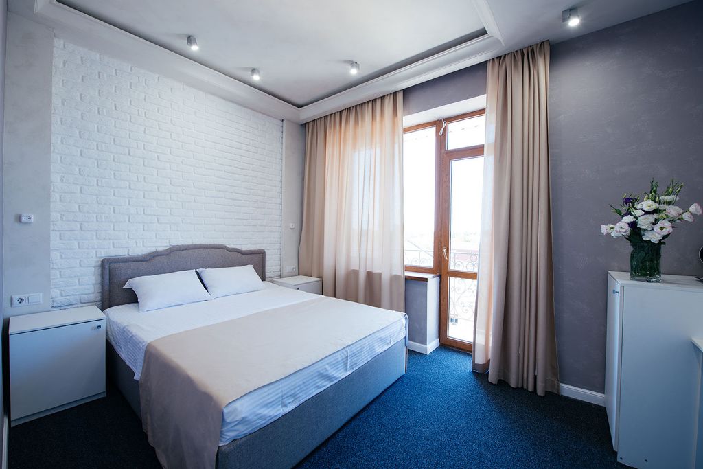 Отель "Пётр" – современный отель европейского уровня, расположенный в историческом центре Евпатории. Инфраструктура отеля включает: ресторан европейской кухни, конференц-зал, 48 просторных номеров с индивидуальным дизайном, разных категорий, и прачечная. Здание окружено домами царской постройки, в шаговой доступности магазины, театр, кинотеатр, парки и игровые площадки для детей.До ближайшего пляжа 5-7 минут. Номерной фонд отеля представлен номерами различных категорий комфортности: от стандарта до люкса. В каждом номере : холодильник, кондиционер, LCD-телевизор SMART TV, сейф, внутренний телефон, вместительный шкаф, комфортное рабочее место, небольшая чайная станция, халат, тапочки, гель для душа, шампунь, мыло, зубной набор, туалетная бумага. По запросу предоставляются наборы: косметический, бритвенный, швейный, лосьон для тела, шапочка для душа, кондиционер для волос, расческа. Питьевая вода - ежедневно. На территории отеля и в номерах функционирует бесплатный доступ WiFi.