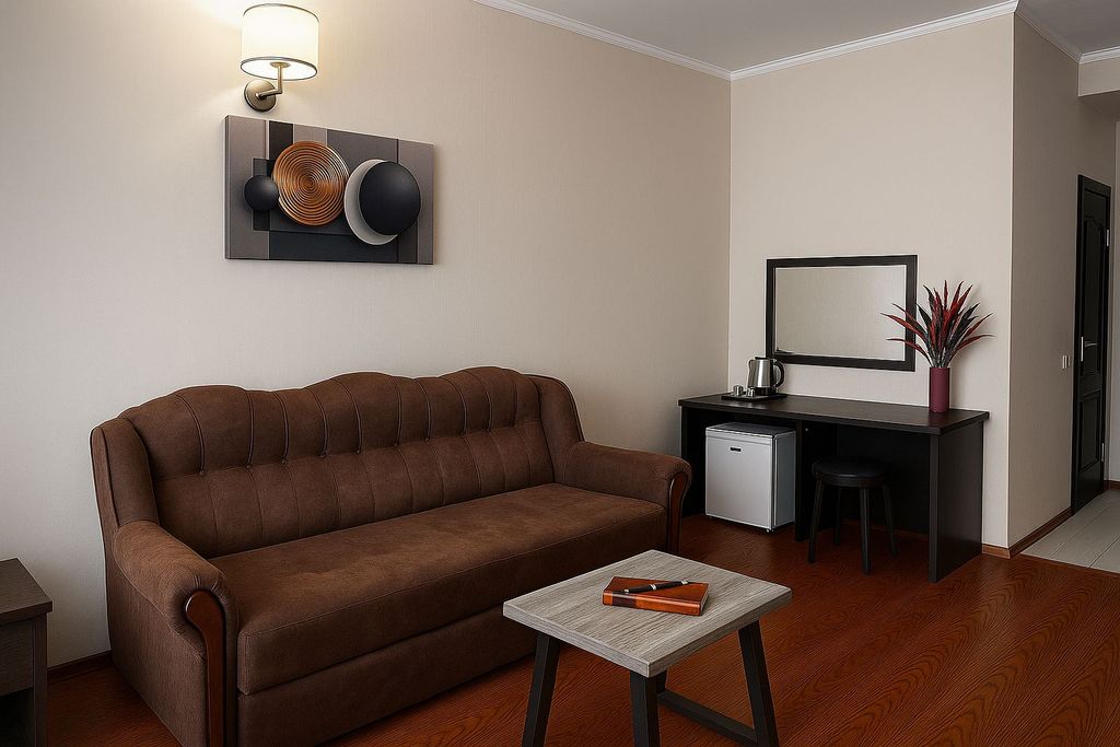 Отель "Марианна" -комфортабельный трёхзвездочный отель, расположенный в центральном районе Сочи. В отеле 49 номеров разной категории от экономов до улучшенных двухкомнатных, а так же апартаменты с финской сауной, бочкой и просторной террасой, где есть зона барбекю, качели и мини-гольф. Континентальный завтрак - бесплатный презент от нашего отеля для каждого гостя. На территории отеля две охраняемые стоянки под круглосуточным видеонаблюдением без оплаты на время проживания гостей. Возможна Аренда: Конференц-зала, для Ваших тренингов, совещаний, обучений, кофе-брейков. Трансформируется под любой запрос *Вместимость до 50 человек На первом этаже отеля располагается уютный лобби-бар, а также работает дополнительная услуга room-servis - доставка еды и напитков в номер. Расстояние от отеля до моря 2,5км., на летний период действует бесплатный трансфер на центральные пляжи сочи. Железнодорожный вокзал сочи - всего в 5 минутах езды на автомобиле. Рядом с отелем круглосуточн