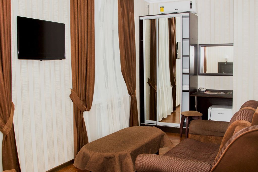 Отель "Марианна" -комфортабельный трёхзвездочный отель, расположенный в центральном районе Сочи. В отеле 49 номеров разной категории от экономов до улучшенных двухкомнатных, а так же апартаменты с финской сауной, бочкой и просторной террасой, где есть зона барбекю, качели и мини-гольф. Континентальный завтрак - бесплатный презент от нашего отеля для каждого гостя. На территории отеля две охраняемые стоянки под круглосуточным видеонаблюдением без оплаты на время проживания гостей. Возможна Аренда: Конференц-зала, для Ваших тренингов, совещаний, обучений, кофе-брейков. Трансформируется под любой запрос *Вместимость до 50 человек На первом этаже отеля располагается уютный лобби-бар, а также работает дополнительная услуга room-servis - доставка еды и напитков в номер. Расстояние от отеля до моря 2,5км., на летний период действует бесплатный трансфер на центральные пляжи сочи. Железнодорожный вокзал сочи - всего в 5 минутах езды на автомобиле. Рядом с отелем круглосуточн
