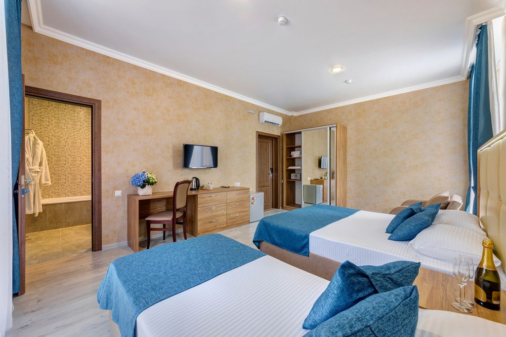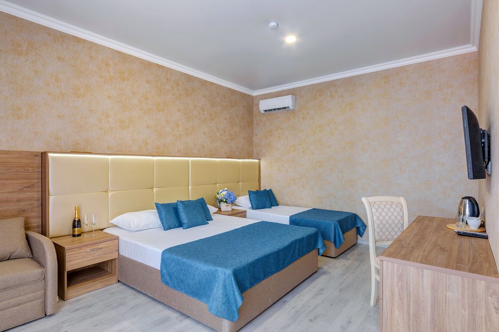 Приглашаем вас в современный отель «Атлас», который расположен в тихом районе Геленджика, в 15 минутах пешей прогулки от морского пляжа курорта. Рядом находится вся развитая инфраструктура, аквапарк, дельфинарий, магазины, центр развлечения. Своим гостям для проживания мы рады предложить уютные номера разной комфортности и вместимости. Ежедневно осуществляется уборка комнат горничными. При необходимости постояльцы могут пользоваться общими гладильными принадлежностями и стиральной машинкой. На территории отеля доступен Wi-Fi, есть 2 круглогодичных подогреваемых открытых бассейна, сезонный подогреваемый открытый бассейн, шезлонги, мангал, детский игровой городок, бесплатная парковка для машин. В летний период работает аниматор. По желанию возможна организация платного комплексного питания в столовой «Атласа», работает летнее кафе с гриль-баром и заказным меню. При необходимости можем встретить вас по месту прибытия на отдых. Проживание с животными запрещено! Питание: 3-разовое. Пита