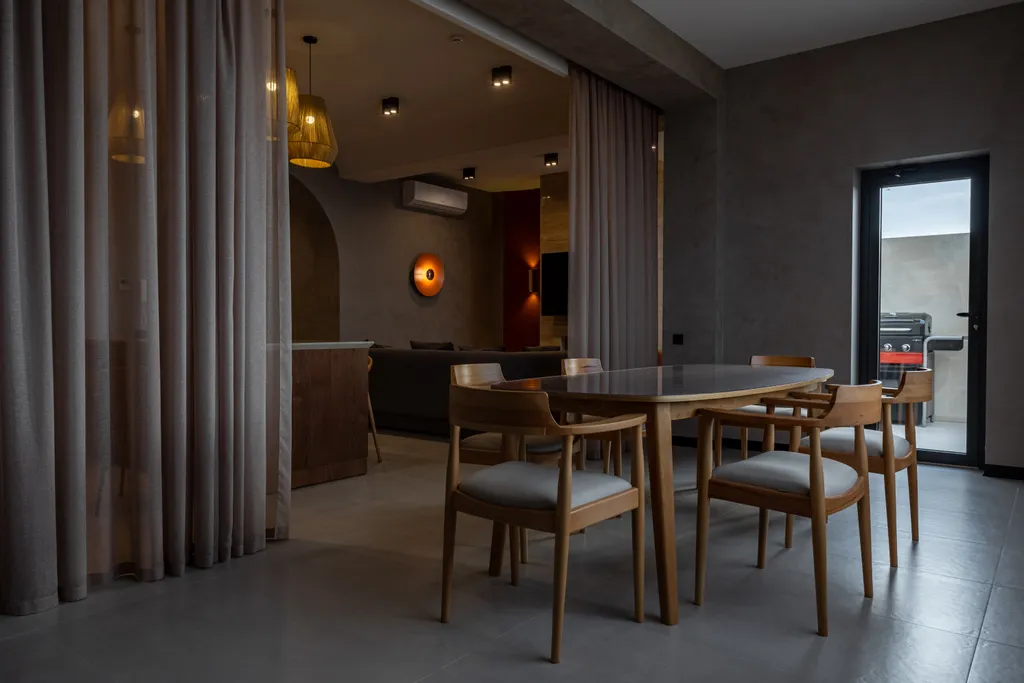 Двухэтажный гостевой дом более 200 кв. м. С двумя двуспальными кроватями и тремя диванами. Дом состоит из 4 комнат с 4-мя индивидуальными ванными комнатами. Кухня. Josper (уголь/газ). Рабочий кабинет. Индивидуальная финская сауна. Веранда с лучшим видом на море. 5-ое и 6-ое основные места предоставляются в виде гостевых матрасов размером 200*90 см. Или в виде раскладушек с пружинным матрасом размером 200*80 см. Доп. место предоставляется в виде раскладушки с пружинным матрасом размером 200*80 см или в виде гостевого матраса размером 200*90 см. Балкон-веранда с видом на море Сауна Гриль зона Кухня Благоустроенная территория: - Детский и взрослый бассейн, оснащенный гидромассажем, шезлонги и зоны отдыха; - оборудованный пляж с шезлонгами и солнцезащитными зонтами; - детская игровая площадка; - аллея для прогулок. Для гостей комплекса предусмотрен бар с прохладительными напитками, авторскими коктейлями, кофе и мороженым, изысканное меню дагестанской и европейской кухни, завтрак