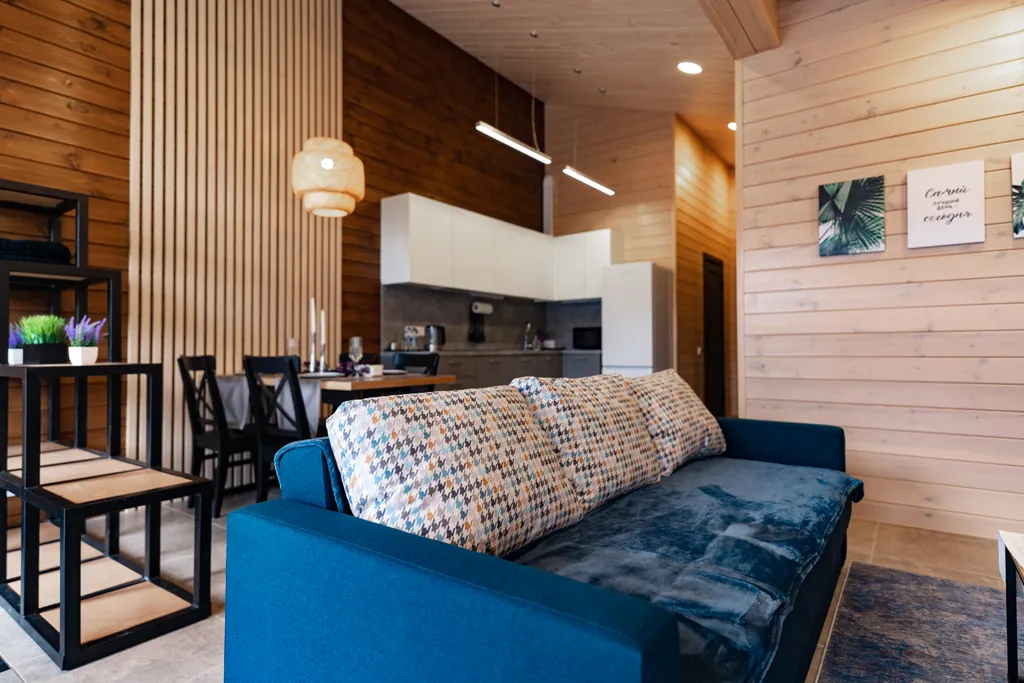 Коттедж Дуплекс Улучшенный расположен на территории загородного клуба "Тихая Гавань" в городе Выборг. Расположение: береговая линия Финского залива, вид во двор. Подходит для размещения до 7 гостей. Оснащение номера: — В первой спальне кровать 160х200 см — Во второй спальне кровати 140х200 см и 90х200 см — Раскладной диван — Ортопедические матрасы — Качественное белье из сатина — Телевизор — Кресло-гнездо — Письменный рабочий стол с лампой для чтения, розетки для ноутбука Для самых маленьких гостей мы предоставляем кроватку-манеж, стульчик для кормления, нагрудник, игровой коврик, ступень для ванной, а также горшок. На кухне есть все необходимое: — Холодильник — Микроволновая печь — Посудомоечная машина с набором капсул — Сахар, соль, перец — Чай и кофе — Гель для стирки — Фен — Набор для уборки — Освежитель воздуха — Средства гигиены — Два халата — По два полотенца на каждого гостя — Гладильная доска и утюг (утюг по запросу) Что посмотреть рядом: — Берег
