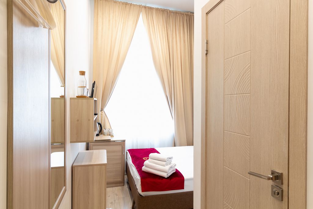 Новый, тихий и светлый отель в центре Москвы. Вам не будет мешать шум города, но нас окружают многочисленные кафе, рестораны, магазины. Отель расположен в 500 м от парка " Зарядье", менее 1 км от Большого театра, 10 минут пешком от мавзолея Ленина и от Государственного исторического музея. Отель может предложить номера категории "Стандарт" и повышенной категории "Джуниор сюит". Только в номерах повышенной комфортности возможно: 1. установить 1 дополнительное место; 2. предложить 2 односпальные кровати; 3. предложить 2 односпальные кровати и 1 дополнительное место. Каждый номер оборудован кондиционером холод/ тепло, есть холодильник, телевизор, в ванных комнатах есть фен, косметический набор, халаты, тапочки. Комплексный завтрак, по меню Отеля, состоит из трех позиций меню. Комплексный обед, состоит из двух позиций меню. Предоставляется с 7.30 до 23-00, в удобное время, в номер. В зоне отдыха Вы можете выпить прохладительные напитки, заказать чай или к
