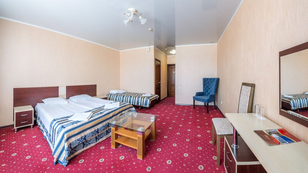 Гостиница «red hotel» расположена непосредственно в городе–курорте анапа. В шести этажном корпусе размещено 36 уютных номеров, из них 10 номеров класса «люкс». Они состоят из 2-х просторных комнат, ванной и санузла. Номера класса «полулюкс» включают в себя спальню, санузел с душевой кабиной. Есть номера категории стандарт. Все номера располагают гостей к длительному проживанию. В каждый номер включены жк-телевизор, холодильник, сплит-система. С балконов отеля в вечернее время можно любоваться неповторимой красотой анапы. Безопасность каждого номера поддерживается использованием электронных ключей. Для комфортного перемещения в гостинице работает лифт. В отеле предоставляются многочисленные услуги для гостей, среди которых: бассейн, сауна, бильярдная, своя автостоянка. В гостинице царит тихая, спокойная атмосфера, а неповторимый дизайн интерьера создает превосходные условия для отдыха. Гостеприимный персонал радушно встретит вас в любое время суток. Квалифицированные работники создадут