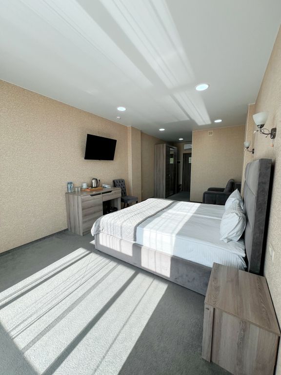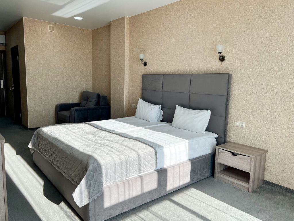 Гранд Сапфир Анапа — новый современный комплексный 4* отель с бассейнами и развитой инфраструктурой, с завораживающим панорамным видом на море. Grand Sapphire Hotel расположен рядом с морем на первой береговой линии черноморского побережья, в спокойном районе вблизи города-курорта Анапа. Расстояние до пляжа около 250 м. Собственный широкий песчаный пляж, оборудованный шезлонгами и зонтиками от солнца. В отеле к услугам гостей открытый бассейн с пресной водой и детской зоной для купания, закрытый спа бассейн с подогревом, сауна, тренажерный зал, конференц зал. Перед отелем бесплатная парковка для автомобилей и бесплатный wi-fi в номерах. По утрам в ресторане «Selfie» отеля вас ждет превосходный завтрак по системе «шведский стол», который входит в стоимость проживания. При бронировании можно выбрать вариант питания с завтраком. В лобби-баре вам предложат различные алкогольные и безалкогольные напитки. Комфортабельные номера с видом на море, круглосуточная охрана, развитая бытовая и до