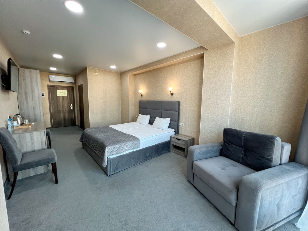 Гранд Сапфир Анапа — новый современный комплексный 4* отель с бассейнами и развитой инфраструктурой, с завораживающим панорамным видом на море. Grand Sapphire Hotel расположен рядом с морем на первой береговой линии черноморского побережья, в спокойном районе вблизи города-курорта Анапа. Расстояние до пляжа около 250 м. Собственный широкий песчаный пляж, оборудованный шезлонгами и зонтиками от солнца. В отеле к услугам гостей открытый бассейн с пресной водой и детской зоной для купания, закрытый спа бассейн с подогревом, сауна, тренажерный зал, конференц зал. Перед отелем бесплатная парковка для автомобилей и бесплатный wi-fi в номерах. По утрам в ресторане «Selfie» отеля вас ждет превосходный завтрак по системе «шведский стол», который входит в стоимость проживания. При бронировании можно выбрать вариант питания с завтраком. В лобби-баре вам предложат различные алкогольные и безалкогольные напитки. Комфортабельные номера с видом на море, круглосуточная охрана, развитая бытовая и до