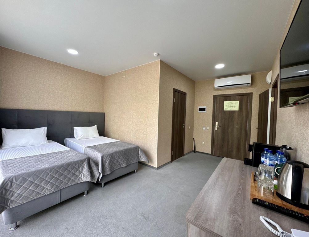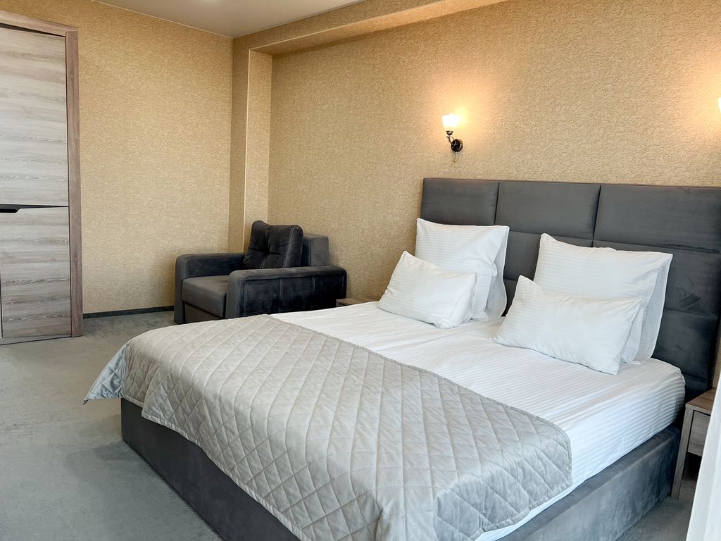 Гранд Сапфир Анапа — новый современный комплексный 4* отель с бассейнами и развитой инфраструктурой, с завораживающим панорамным видом на море. Grand Sapphire Hotel расположен рядом с морем на первой береговой линии черноморского побережья, в спокойном районе вблизи города-курорта Анапа. Расстояние до пляжа около 250 м. Собственный широкий песчаный пляж, оборудованный шезлонгами и зонтиками от солнца. В отеле к услугам гостей открытый бассейн с пресной водой и детской зоной для купания, закрытый спа бассейн с подогревом, сауна, тренажерный зал, конференц зал. Перед отелем бесплатная парковка для автомобилей и бесплатный wi-fi в номерах. По утрам в ресторане «Selfie» отеля вас ждет превосходный завтрак по системе «шведский стол», который входит в стоимость проживания. При бронировании можно выбрать вариант питания с завтраком. В лобби-баре вам предложат различные алкогольные и безалкогольные напитки. Комфортабельные номера с видом на море, круглосуточная охрана, развитая бытовая и до
