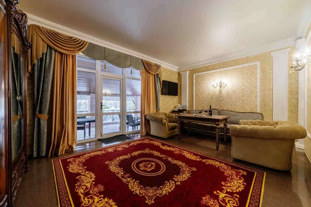 Элегантный и просторный коттедж площадью 80 кв. м. Интерьер и мебель коттеджа выполнен в классическом стиле и включает в себя: гостевую комнату, в которой расположена мягкая зона, большой жидкокристаллический телевизор 42 дюйма с многоканальным спутниковым телевидением, и две спальни, в каждой из которых находится одна большая двуспальная кровать 180х200 Коттедж оснащен собственной верандой-террасой. На веранде плетённая мебель для вашего приятного времяпрепровождения, а также мангал. Один ребенок до 3 лет, без предоставления дополнительного места, размещается бесплатно. Включено: спа; тренажёрный зал; бильярд; настольный теннис; аэрохоккей; игровая и детская комнаты для детей; парковка на территории отеля; высокоскоростной wi-fi на всей территории отеля.
