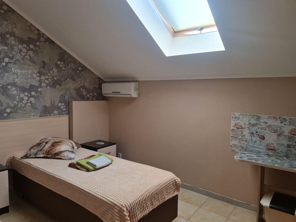 Приглашаем Вас провести ваш отдых в Крыму. Наш отель находится в центральной части базы отдыха Скиф, которая расположена на западной части Черного моря, в курортном поселке Николаевка, это 36 км. от Симферополя. До берега моря от отеля 200 метров. Во дворе отеля очень уютная беседка, детская площадка, мангальная зона. Полностью оборудованная общая кухня, в которой есть вся необходимая посуда для приготовления пищи. В каждом номере свой отдельный душ, туалет, холодильник, телевизор, кондиционер, чайник, бесплатный wi-fi. Открытый бассейн гармонично вписывается в атмосферу отдыха, позволяя наслаждаться свежим воздухом, солнечными лучами и атмосферой курортного комфорта прямо на территории отеля. Особое внимание мы уделили удобству гостей всех возрастов. Бассейн разделён на взрослую и детскую зоны, что делает отдых безопасным и комфортным для семей с детьми. Пока взрослые могут спокойно плавать и отдыхать, маленькие гости смогут весело проводить время в специально оборудованной безопасно