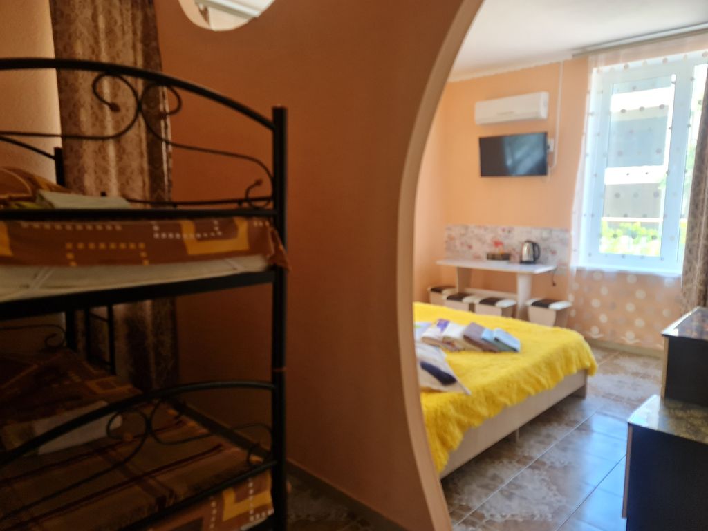 Приглашаем Вас провести ваш отдых в Крыму. Наш отель находится в центральной части базы отдыха Скиф, которая расположена на западной части Черного моря, в курортном поселке Николаевка, это 36 км. от Симферополя. До берега моря от отеля 200 метров. Во дворе отеля очень уютная беседка, детская площадка, мангальная зона. Полностью оборудованная общая кухня, в которой есть вся необходимая посуда для приготовления пищи. В каждом номере свой отдельный душ, туалет, холодильник, телевизор, кондиционер, чайник, бесплатный wi-fi. Открытый бассейн гармонично вписывается в атмосферу отдыха, позволяя наслаждаться свежим воздухом, солнечными лучами и атмосферой курортного комфорта прямо на территории отеля. Особое внимание мы уделили удобству гостей всех возрастов. Бассейн разделён на взрослую и детскую зоны, что делает отдых безопасным и комфортным для семей с детьми. Пока взрослые могут спокойно плавать и отдыхать, маленькие гости смогут весело проводить время в специально оборудованной безопасно