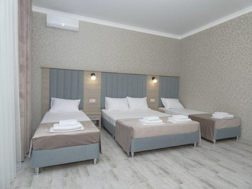 Мы находимся 800м до моря. Все в пошаговом расположении: центральная улица, детская площадка, магнит, банк, продуктовый рынок и тд. Номера в идеально новом состоянии, с хорошими удобствами. На площадке отеля имеется 12-ти метровый бассейн с подогревом, парковка. В отеле имеется общая кухня оснащённая газовой плитой, микроволновой печью и электрочайником.