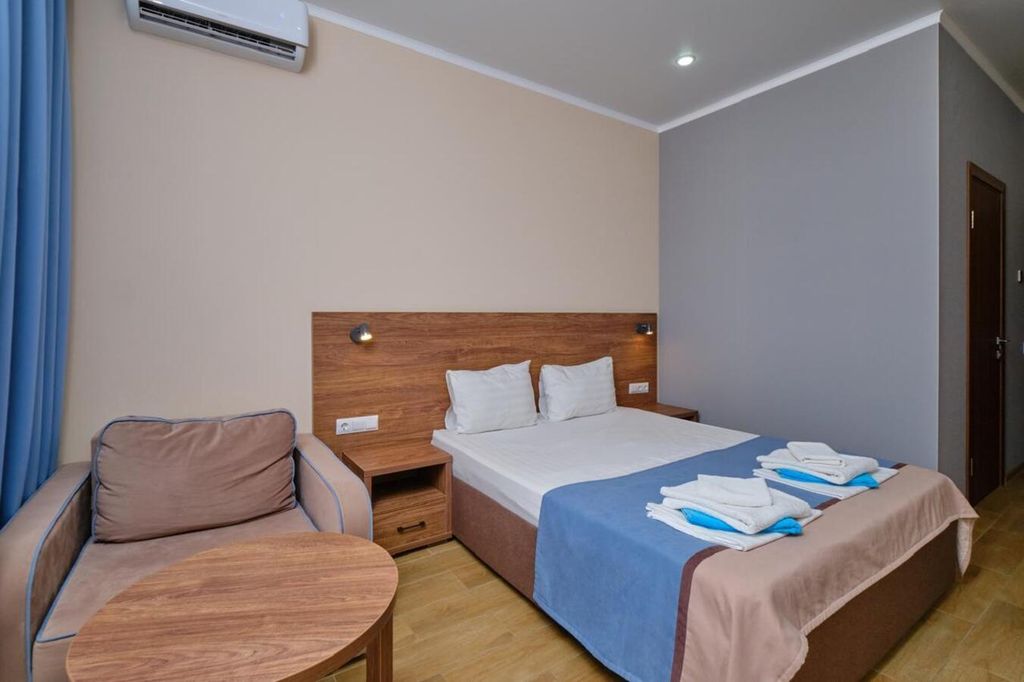 Отель оформлен в современном стиле и выделяется ярким декором. Все номера оснащены просторными удобными кроватями и кондиционерами. На территории отеля есть зона отдыха с бассейном, работает бар, а так же игровая зона для наших маленьких гостей. Территориально мы расположены в Витязево, в шаговой доступности море, парк развлечений, рестораны, клубы, аквапарк. В то же время, территория расположена так, что вас не будут мешать шум оживленных улиц и заведений. Витязево — пригород Анапы, куда без труда можно добраться разными способами. В то же время наш пляж выгодно отличается от пляжей Анапской бухты. Тип питания в нашем отеле - Шведский стол. Широкий ассортимент первых и вторых блюд, свежих салатов, сезонных овощей и фруктов, хлебобулочных изделий и десертной выпечки собственного производства, сухие завтраки, молочная продукция (кефир, ряженка, йогурт, молоко). Важно. Парковка по наличию свободных мест. Рядом есть платные стоянки.