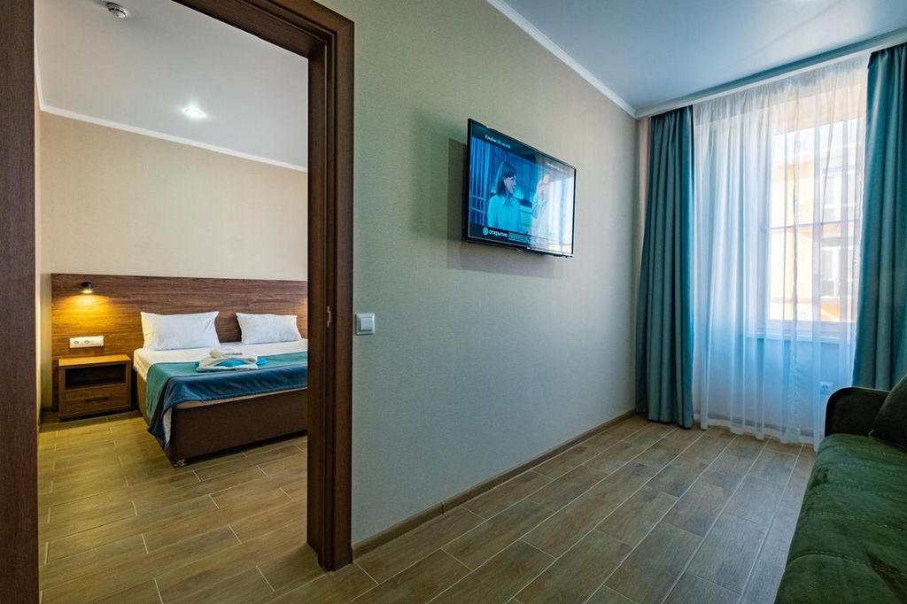 Отель оформлен в современном стиле и выделяется ярким декором. Все номера оснащены просторными удобными кроватями и кондиционерами. На территории отеля есть зона отдыха с бассейном, работает бар, а так же игровая зона для наших маленьких гостей. Территориально мы расположены в Витязево, в шаговой доступности море, парк развлечений, рестораны, клубы, аквапарк. В то же время, территория расположена так, что вас не будут мешать шум оживленных улиц и заведений. Витязево — пригород Анапы, куда без труда можно добраться разными способами. В то же время наш пляж выгодно отличается от пляжей Анапской бухты. Тип питания в нашем отеле - Шведский стол. Широкий ассортимент первых и вторых блюд, свежих салатов, сезонных овощей и фруктов, хлебобулочных изделий и десертной выпечки собственного производства, сухие завтраки, молочная продукция (кефир, ряженка, йогурт, молоко). Важно. Парковка по наличию свободных мест. Рядом есть платные стоянки.