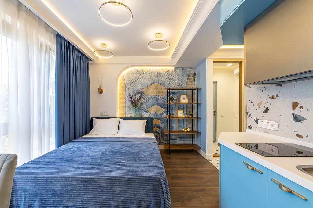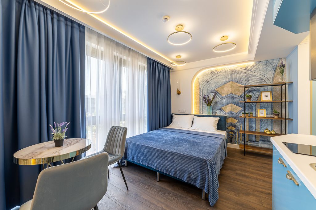 Концепция наших апартаментов основана на работах Марка Шагала, интересного необычного художника со своим видением мира, чьи произведения необыкновенно колоритны и аутентичны. Шагал создал свою собственную реальность, которая насыщена краскам и искрится чувствами. Наши апартаменты тоже не стали тому исключением, так как каждый номер обладает своим индивидуальным дизайном. Плавные переходы не замыкают взгляд на одном помещении, а заставляют воспринимать все пространство как единое целое. Это именно тот случай когда апартаменты являются целой фотозоной. Чистота и утончённость линий, дорогие материалы и парадное великолепие - все это сделает ваш отдых приятным и незабываемым. Ждём Вас в наших апартаментах «Шагал по Красной Площади».