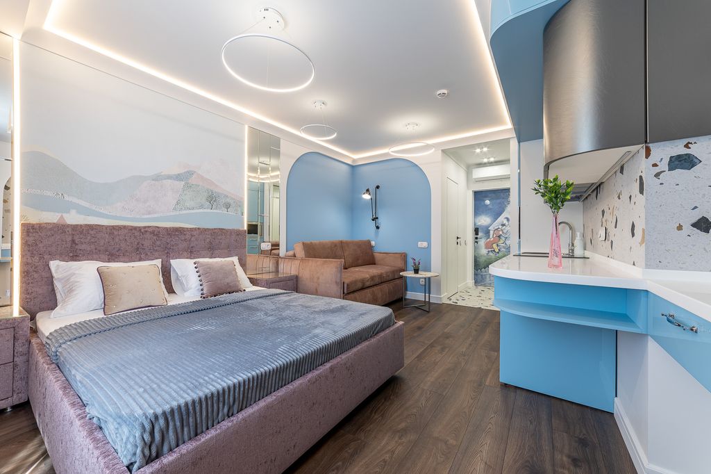 Концепция наших апартаментов основана на работах Марка Шагала, интересного необычного художника со своим видением мира, чьи произведения необыкновенно колоритны и аутентичны. Шагал создал свою собственную реальность, которая насыщена краскам и искрится чувствами. Наши апартаменты тоже не стали тому исключением, так как каждый номер обладает своим индивидуальным дизайном. Плавные переходы не замыкают взгляд на одном помещении, а заставляют воспринимать все пространство как единое целое. Это именно тот случай когда апартаменты являются целой фотозоной. Чистота и утончённость линий, дорогие материалы и парадное великолепие - все это сделает ваш отдых приятным и незабываемым. Ждём Вас в наших апартаментах «Шагал по Красной Площади».