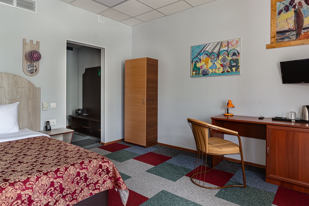 Арт-отель Форт Колесник расположен в живописном пригороде Санкт-Петербурга, городе Пушкине. Уникальный дизайн отеля и здания выполнен в стиле средневекового замка. Номерной фонд отеля представлен просторными комфортабельными номерами различных категорий со всеми удобствами и элементами декора, созданными современным художником. В каждом номере удобные кровати, ТВ, сейф, ванная комната. Номера более высокой категории обладают большей площадью, гостиной с диваном, чайной станцией и халатом. К услугам гостей - бесплатный Wi-Fi, ресторан "9 Parrots" с русско-европейской кухней, просторная парковка, услуги прачечной, трансфер. Конференц-комплекс с оборудованными залами до 300 человек и переговорными комнатами. Фитнес-клуб площадью 1500 кв. м с просторным современным тренажерным залом, залом групповых занятий и бассейном с сауной доступны гостям отеля от 7 лет. Для юных гостей открыта детская комната "Kindаквариум". Конгрессно-выставочный центр "Экспофорум" нахо