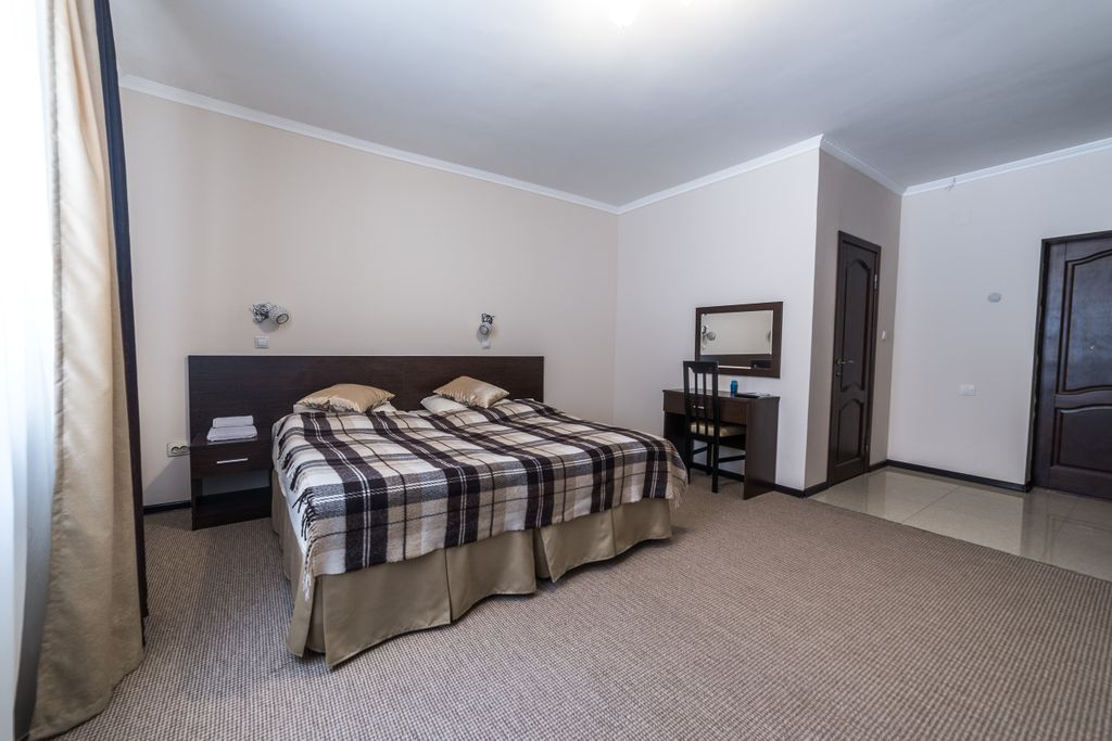 Номера категории Стандартный, Стандартный плюс, Полулюкс и Двухкомнатный Люкс с балконом. В номерах большая двуспальная кровать, рабочая зона, прикроватные тумбы и дополнительное освещение, душевая, постельное белье, полотенца и фен. Зимой включается подогрев полов в душевой. Во всех номерах бесплатный WiFi. На территории отеля имеется Мангальная зона и Русская баня. На первом этаже функционирует кафетерий (питание оплачивается отдельно).