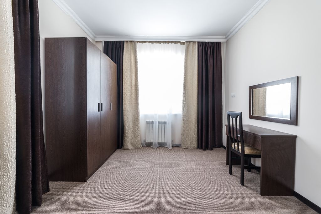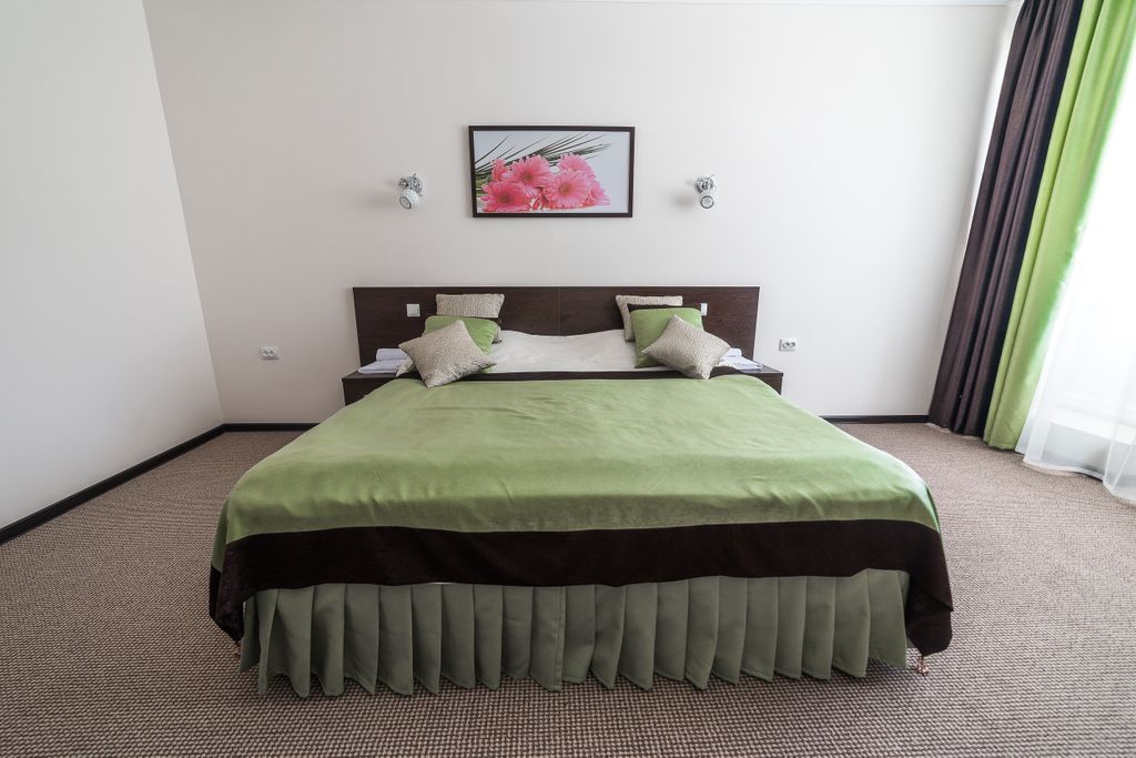 Номера категории Стандартный, Стандартный плюс, Полулюкс и Двухкомнатный Люкс с балконом. В номерах большая двуспальная кровать, рабочая зона, прикроватные тумбы и дополнительное освещение, душевая, постельное белье, полотенца и фен. Зимой включается подогрев полов в душевой. Во всех номерах бесплатный WiFi. На территории отеля имеется Мангальная зона и Русская баня. На первом этаже функционирует кафетерий (питание оплачивается отдельно).