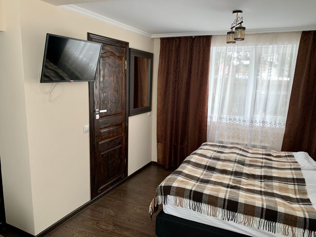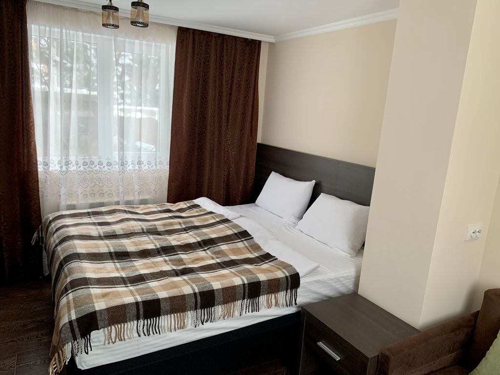 Номера категории Стандартный, Стандартный плюс, Полулюкс и Двухкомнатный Люкс с балконом. В номерах большая двуспальная кровать, рабочая зона, прикроватные тумбы и дополнительное освещение, душевая, постельное белье, полотенца и фен. Зимой включается подогрев полов в душевой. Во всех номерах бесплатный WiFi. На территории отеля имеется Мангальная зона и Русская баня. На первом этаже функционирует кафетерий (питание оплачивается отдельно).